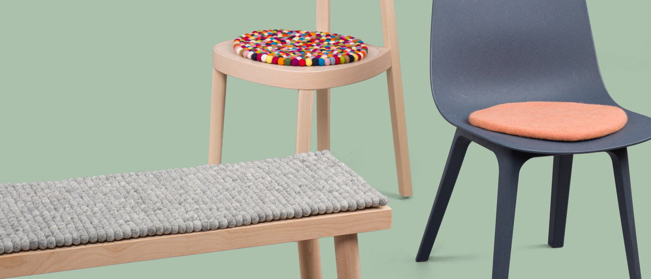 Mit den komfortablen Sitzauflagen von myfelt lassen sich Stühle und Sitzgelegenheiten nachhaltig aufwerten. Sowohl flach als auch im ansprechenden Filzkugeldesign sind sie eine praktische Ergänzung für klassische Bürostühle. Denn wie auch bei allen anderen myfelt Produkten entsprechen Design und Verarbeitung höchsten Standards. Stuhlgruppen im Arbeitszimmer oder eine kleine Meetinglounge lassen sich mit den weichen Sitzauflagen auf praktische Weise verschönern. Neben den Standardmaßen lässt sich bei den Filzkugel-Sitzauflagen auch jede individuelle Wunschgröße einstellen.