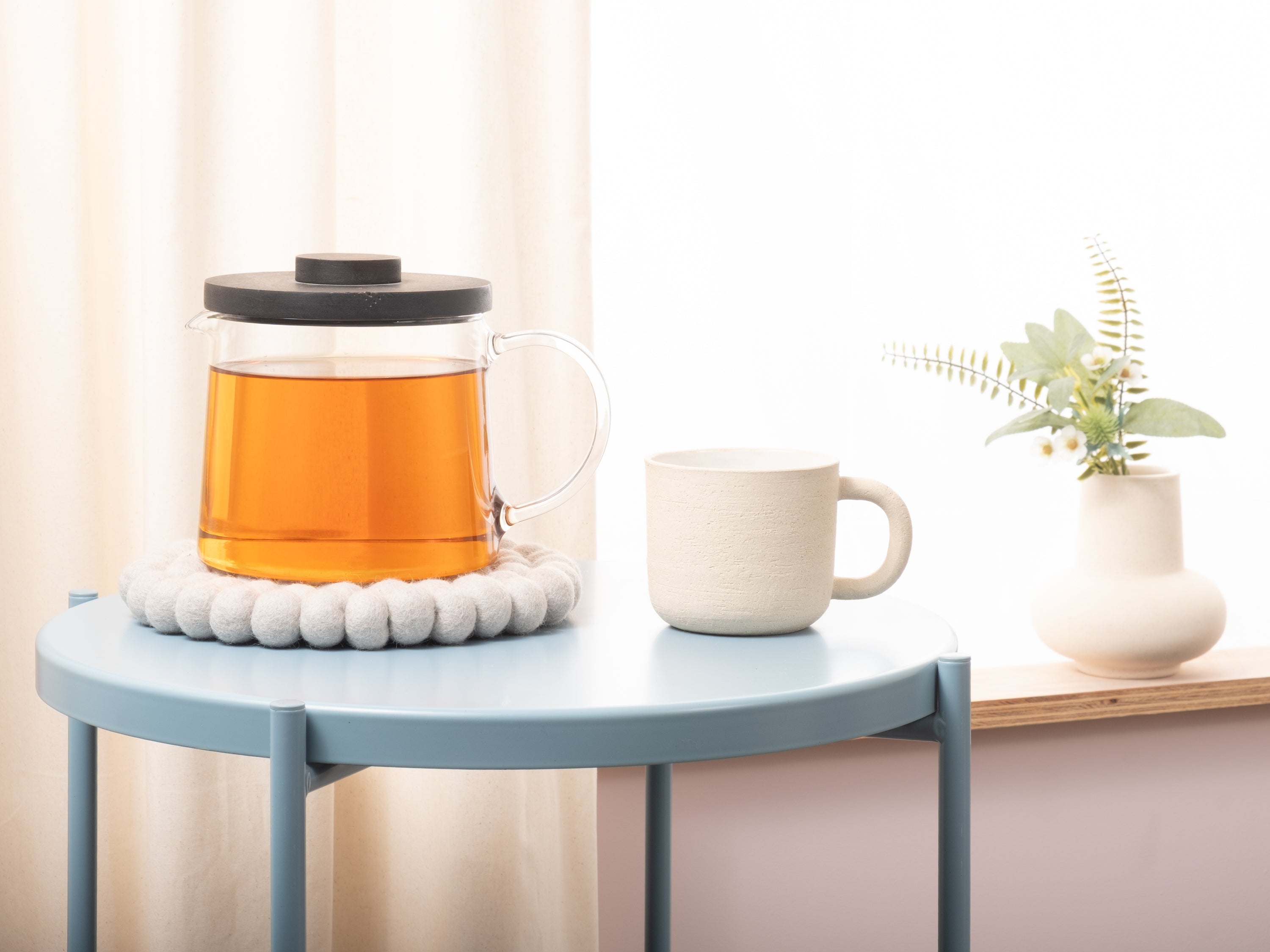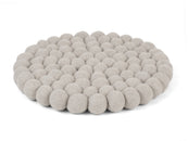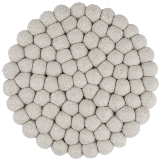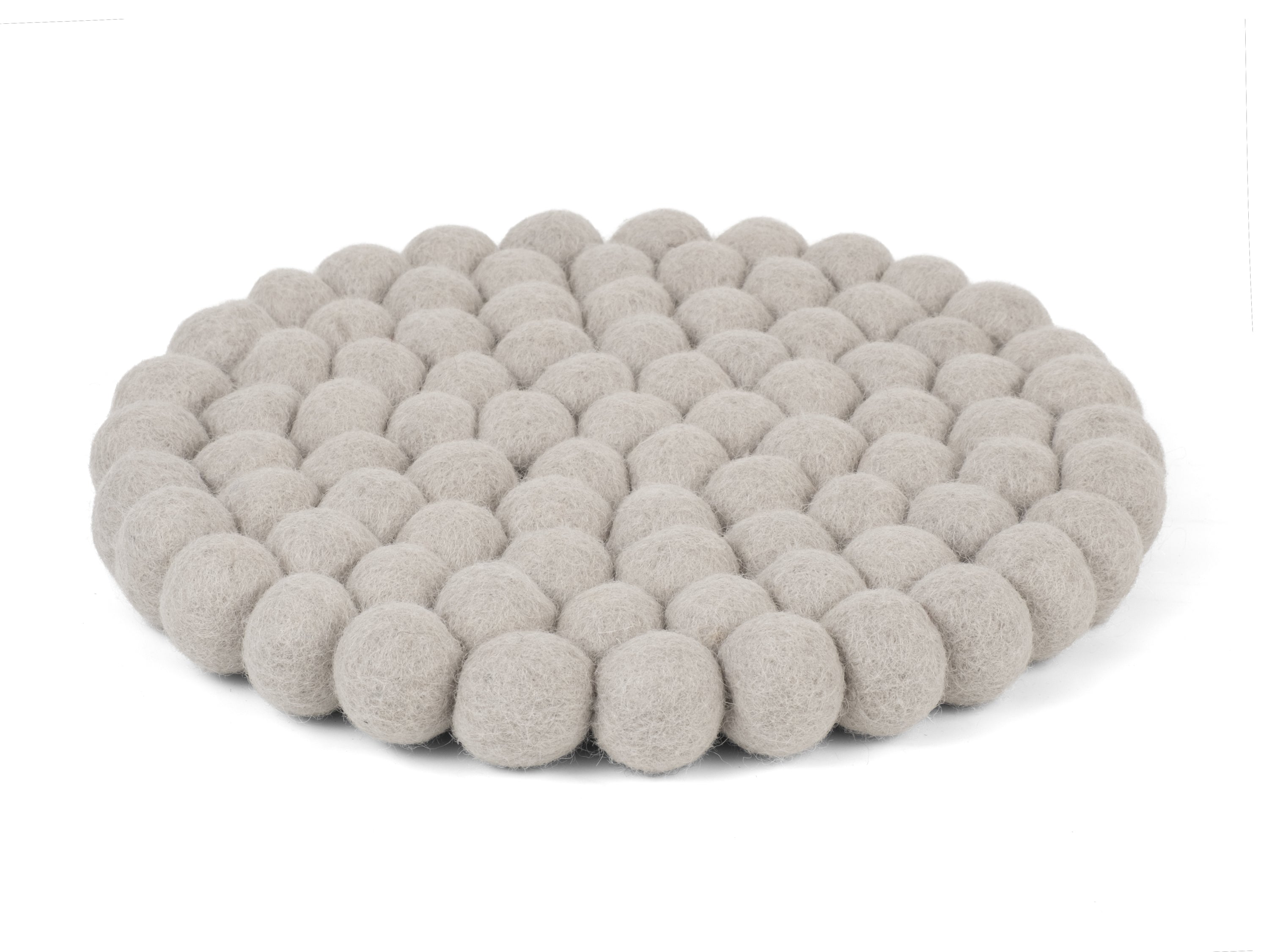 Runder, hellgrauer Topfuntersetzer aus reiner Schurwolle