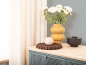 Runder, brauner Topfuntersetzer aus reiner Schurwolle