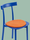 Runde, orangefarbene flache Sitzauflage aus reiner Schurwolle.