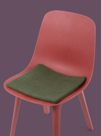 Quadratische, dunkelgrüne flache Sitzauflage aus reiner Schurwolle.
