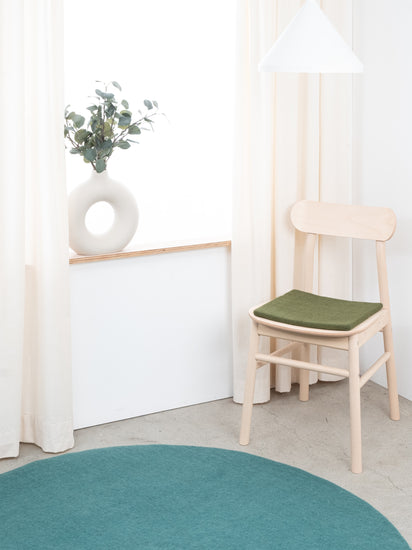 Die dunkelgrüne, flache Sitzauflage Jost bringt Wärme und Weichheit auf deinen Lieblingsstuhl. Gefertigt aus reiner Schurwolle, von Hand in Nepal hergestellt und unter fairen Bedingungen produziert. myfelt Sitzauflagen sind wasser- und schmutzabweisend und beidseitig verwendbar.