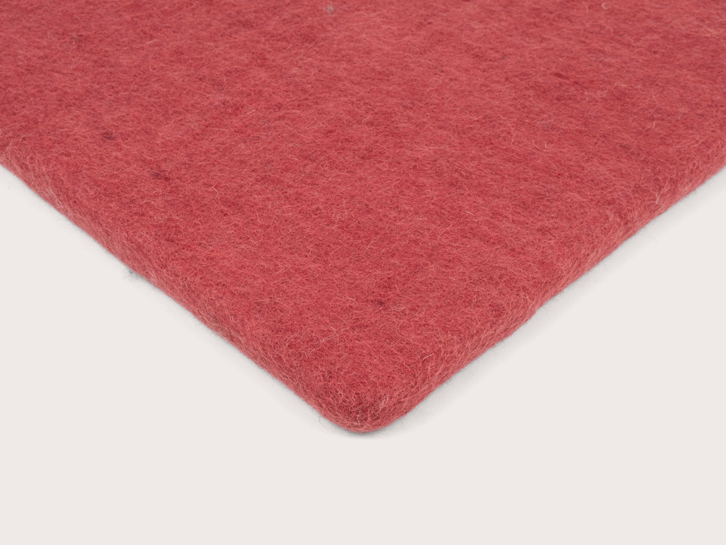 Die weinrote, flache Sitzauflage Kaja bringt Wärme und Weichheit auf deinen Lieblingsstuhl. Gefertigt aus reiner Schurwolle, von Hand in Nepal hergestellt und unter fairen Bedingungen produziert. myfelt Sitzauflagen sind wasser- und schmutzabweisend und beidseitig verwendbar.