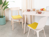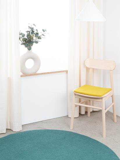 Die grüngelbe, flache Sitzauflage Kata bringt Wärme und Weichheit auf deinen Lieblingsstuhl. Gefertigt aus reiner Schurwolle, von Hand in Nepal hergestellt und unter fairen Bedingungen produziert. myfelt Sitzauflagen sind wasser- und schmutzabweisend und beidseitig verwendbar.