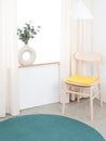 Die gelbe, flache Sitzauflage Kira bringt Wärme und Weichheit auf deinen Lieblingsstuhl. Gefertigt aus reiner Schurwolle, von Hand in Nepal hergestellt und unter fairen Bedingungen produziert. myfelt Sitzauflagen sind wasser- und schmutzabweisend und beidseitig verwendbar.
