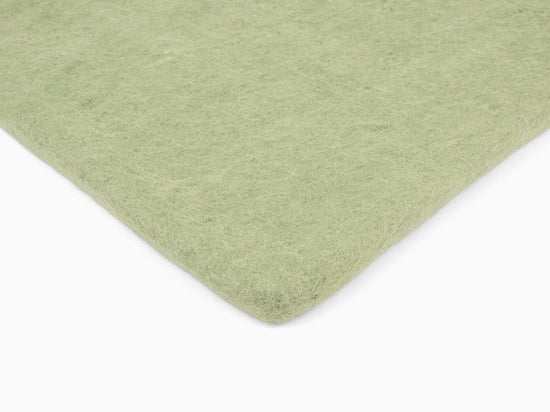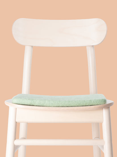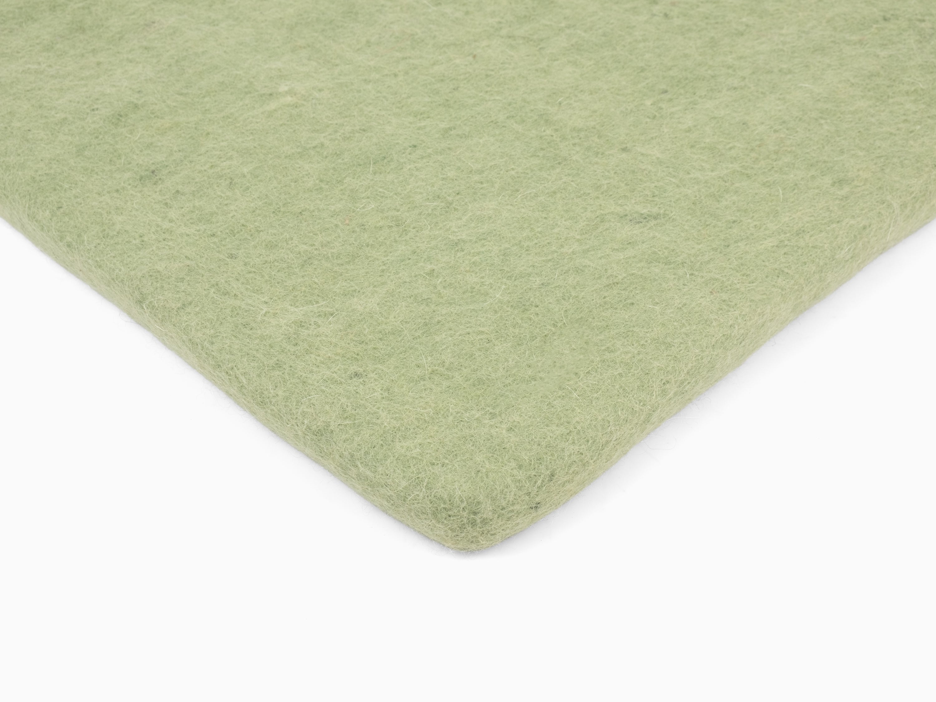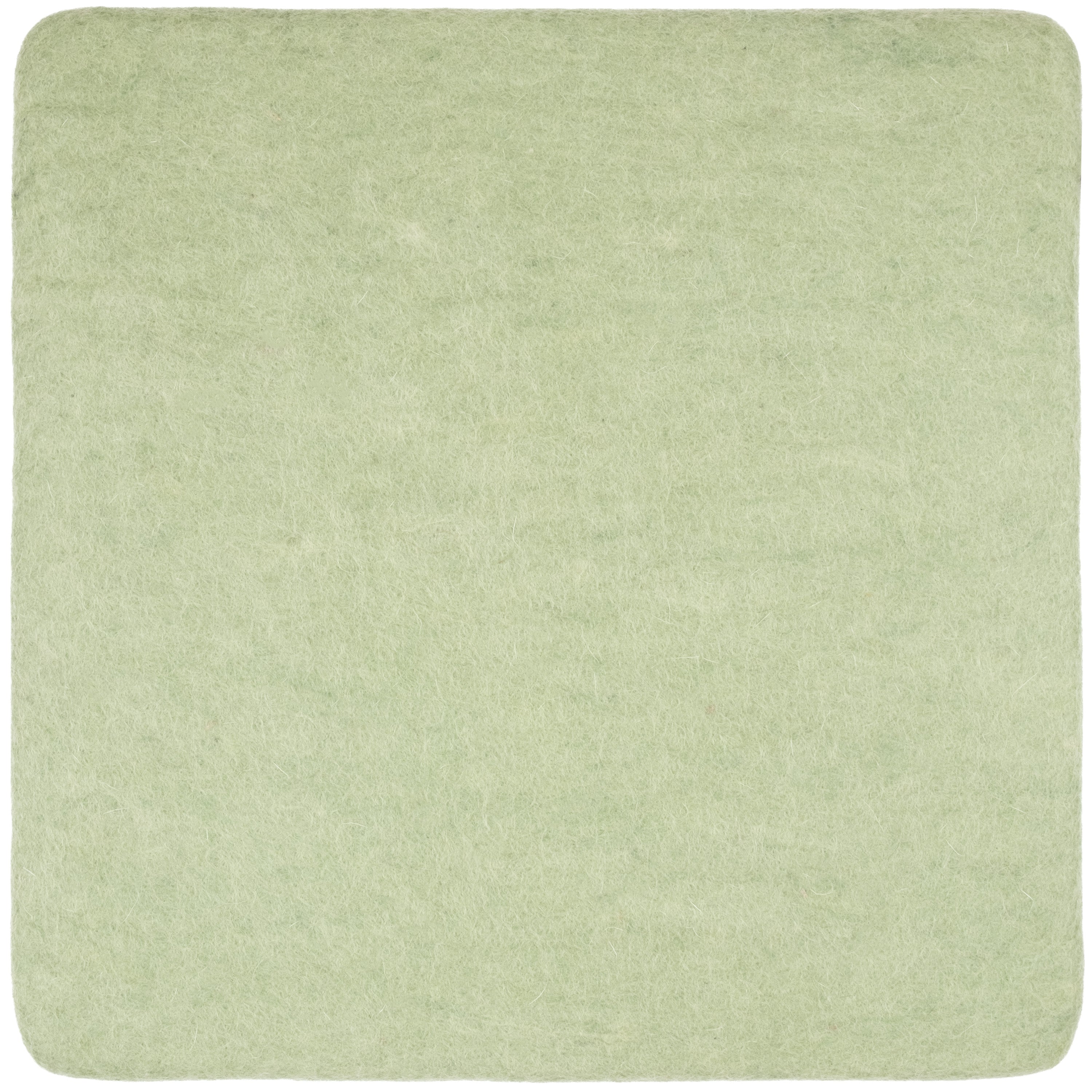 Quadratische, hellgrüne flache Sitzauflage aus reiner Schurwolle.