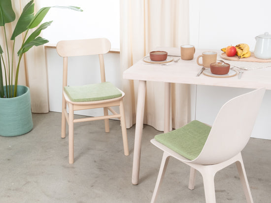 Die hellgrüne, flache Sitzauflage Lasse bringt Wärme und Weichheit auf deinen Lieblingsstuhl. Gefertigt aus reiner Schurwolle, von Hand in Nepal hergestellt und unter fairen Bedingungen produziert. myfelt Sitzauflagen sind wasser- und schmutzabweisend und beidseitig verwendbar.