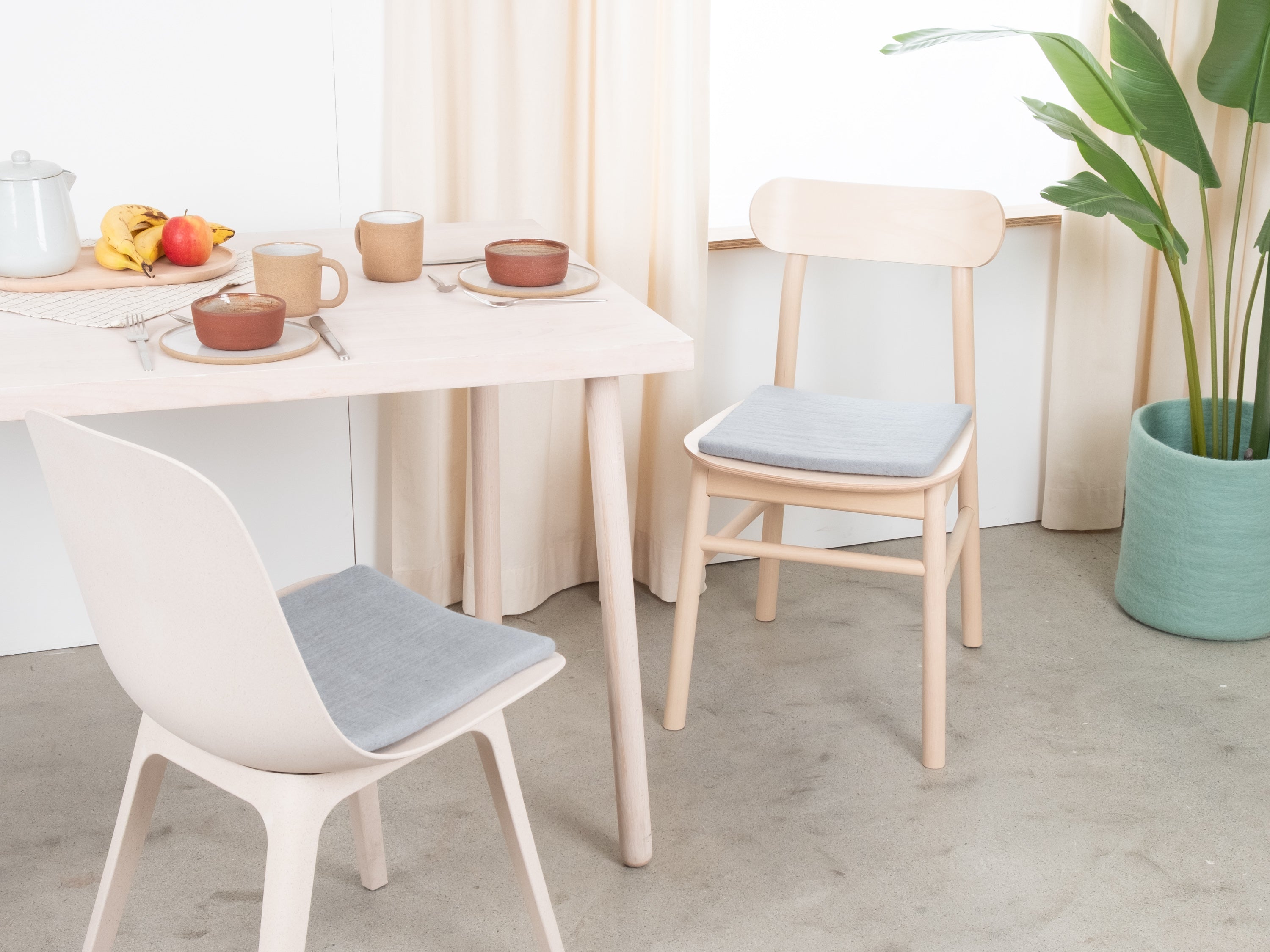 Die hellblaue, flache Sitzauflage Liv bringt Wärme und Weichheit auf deinen Lieblingsstuhl. Gefertigt aus reiner Schurwolle, von Hand in Nepal hergestellt und unter fairen Bedingungen produziert. myfelt Sitzauflagen sind wasser- und schmutzabweisend und beidseitig verwendbar.