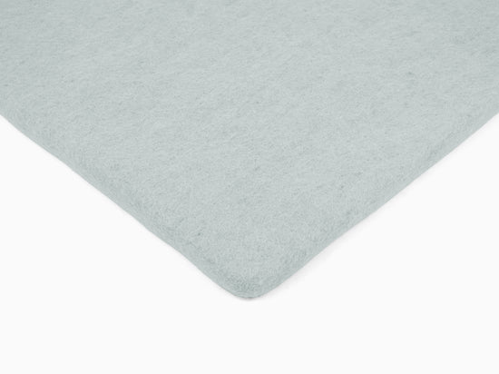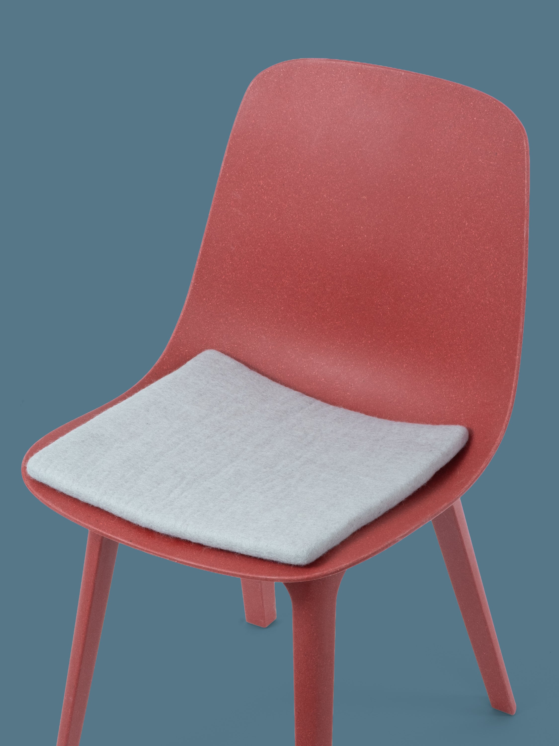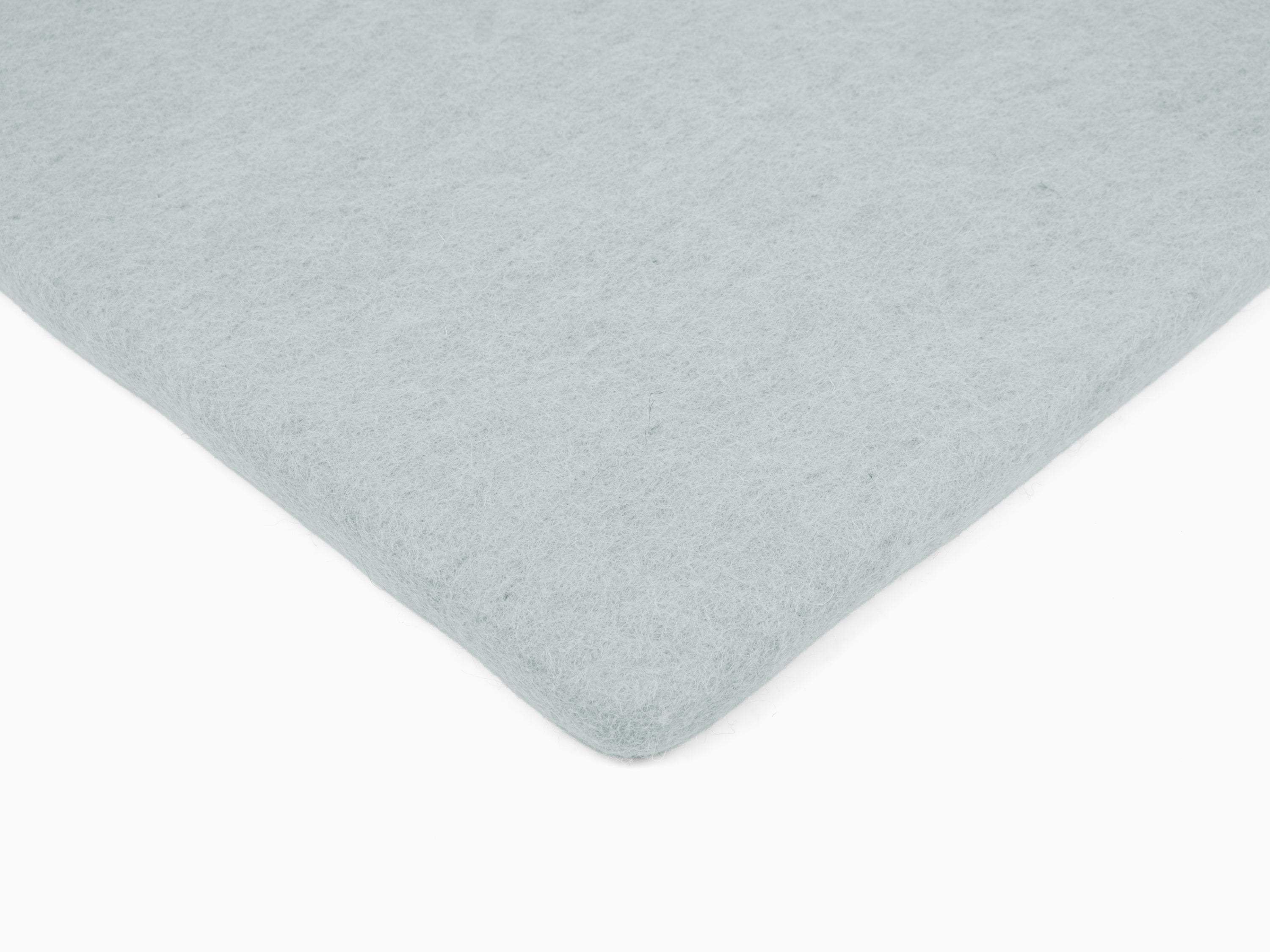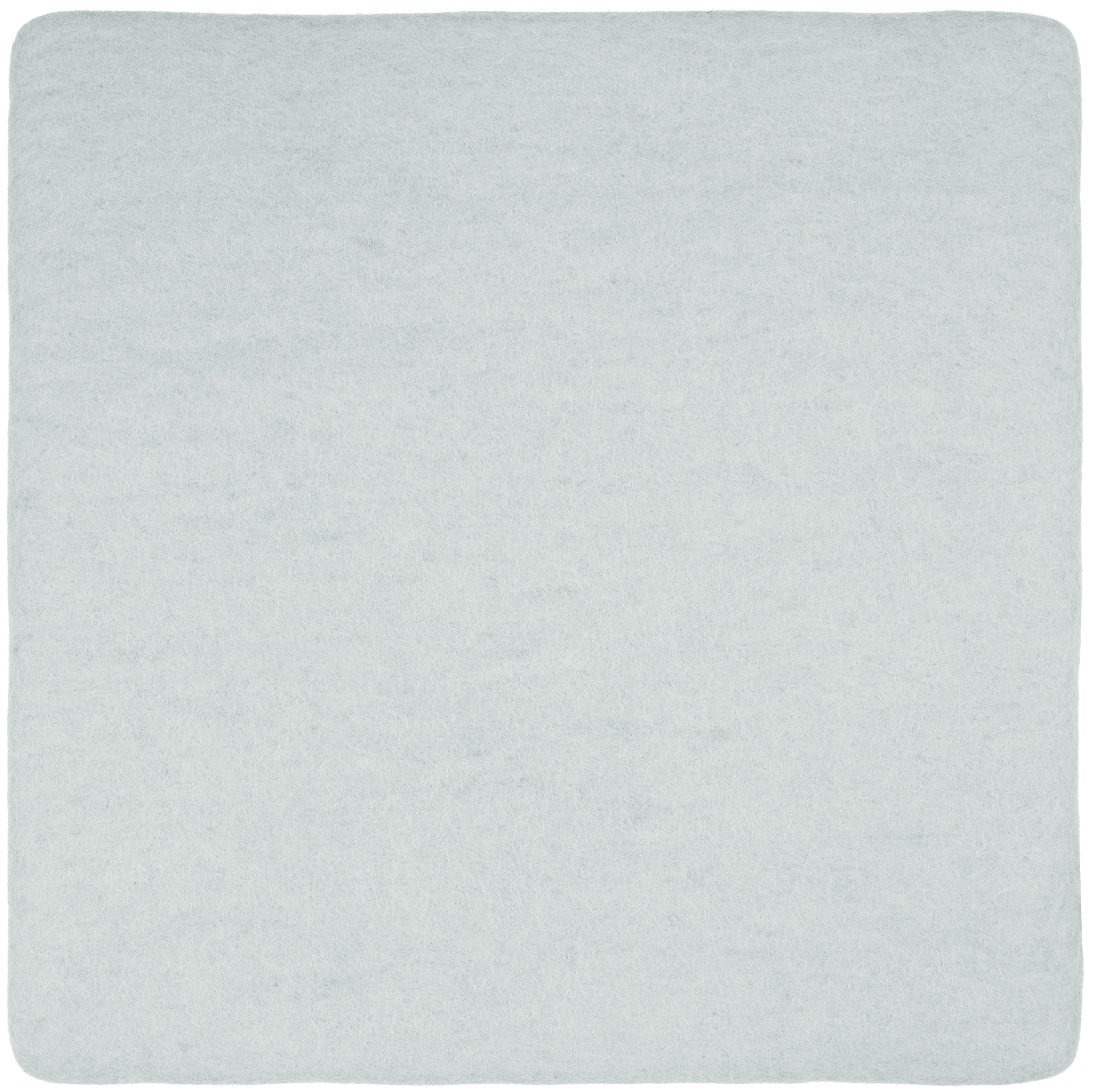 Quadratische, hellblaue flache Sitzauflage aus reiner Schurwolle.