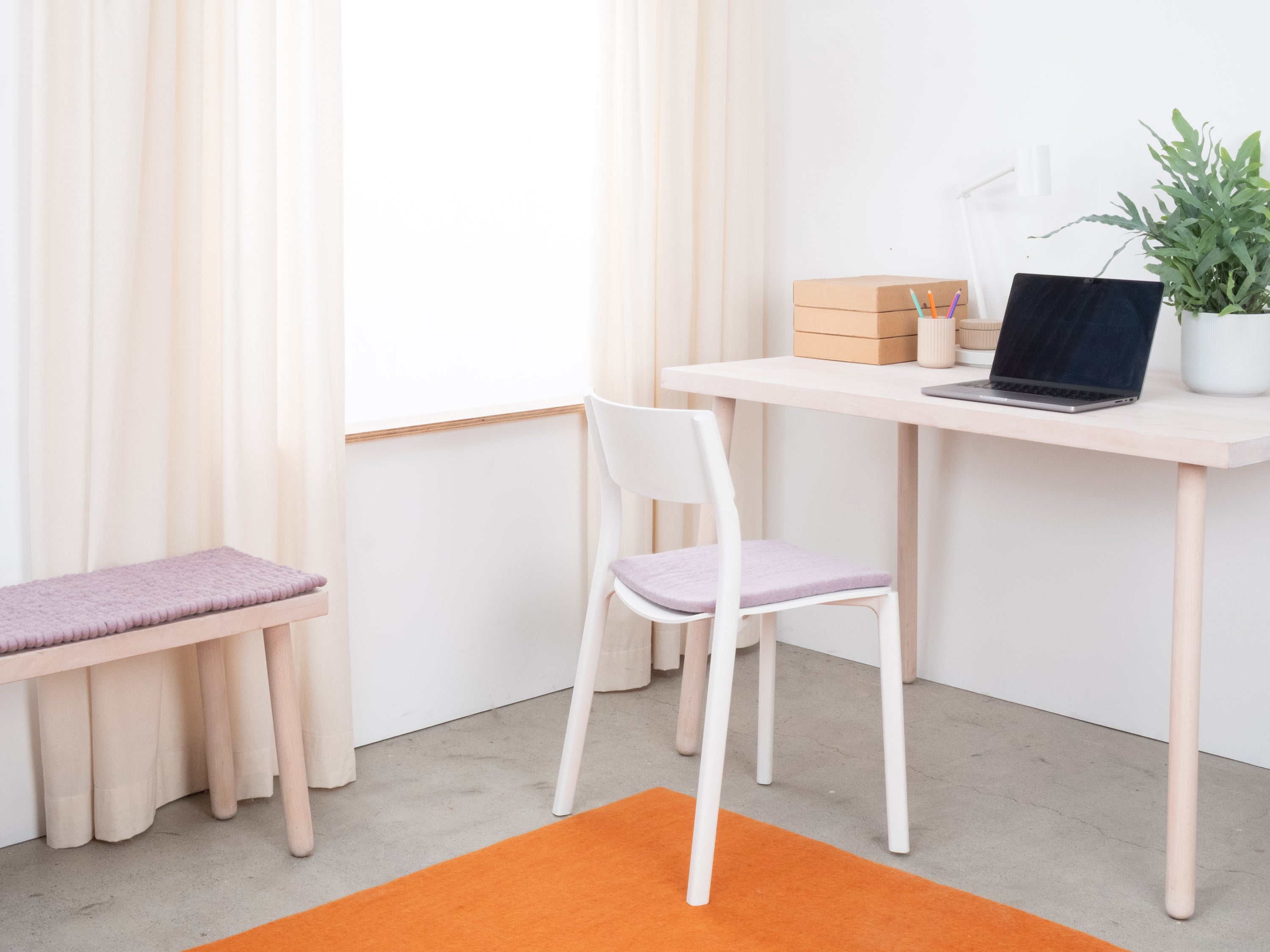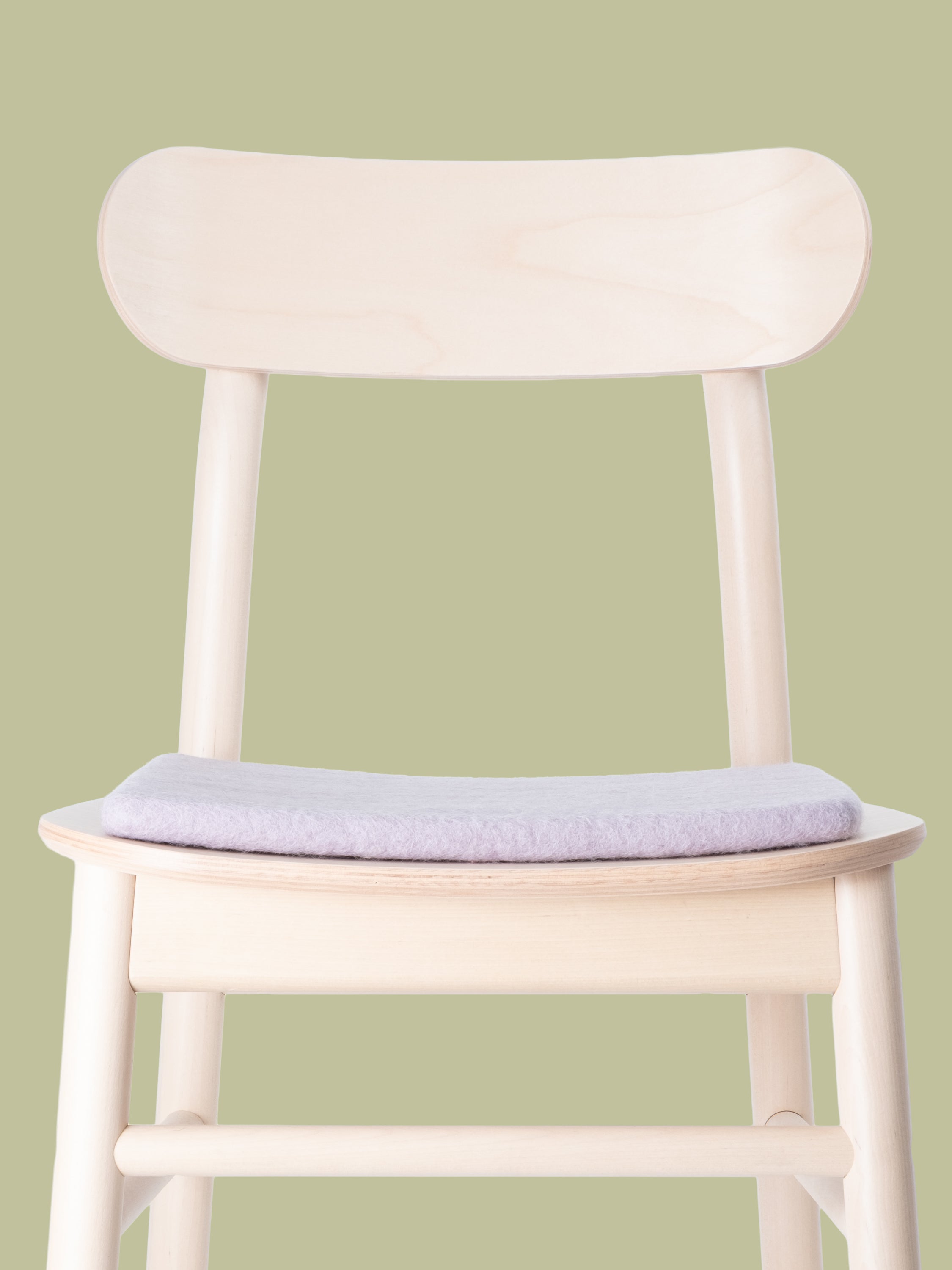 Die hellviolette, flache Sitzauflage Marla bringt Wärme und Weichheit auf deinen Lieblingsstuhl. Gefertigt aus reiner Schurwolle, von Hand in Nepal hergestellt und unter fairen Bedingungen produziert. myfelt Sitzauflagen sind wasser- und schmutzabweisend und beidseitig verwendbar.