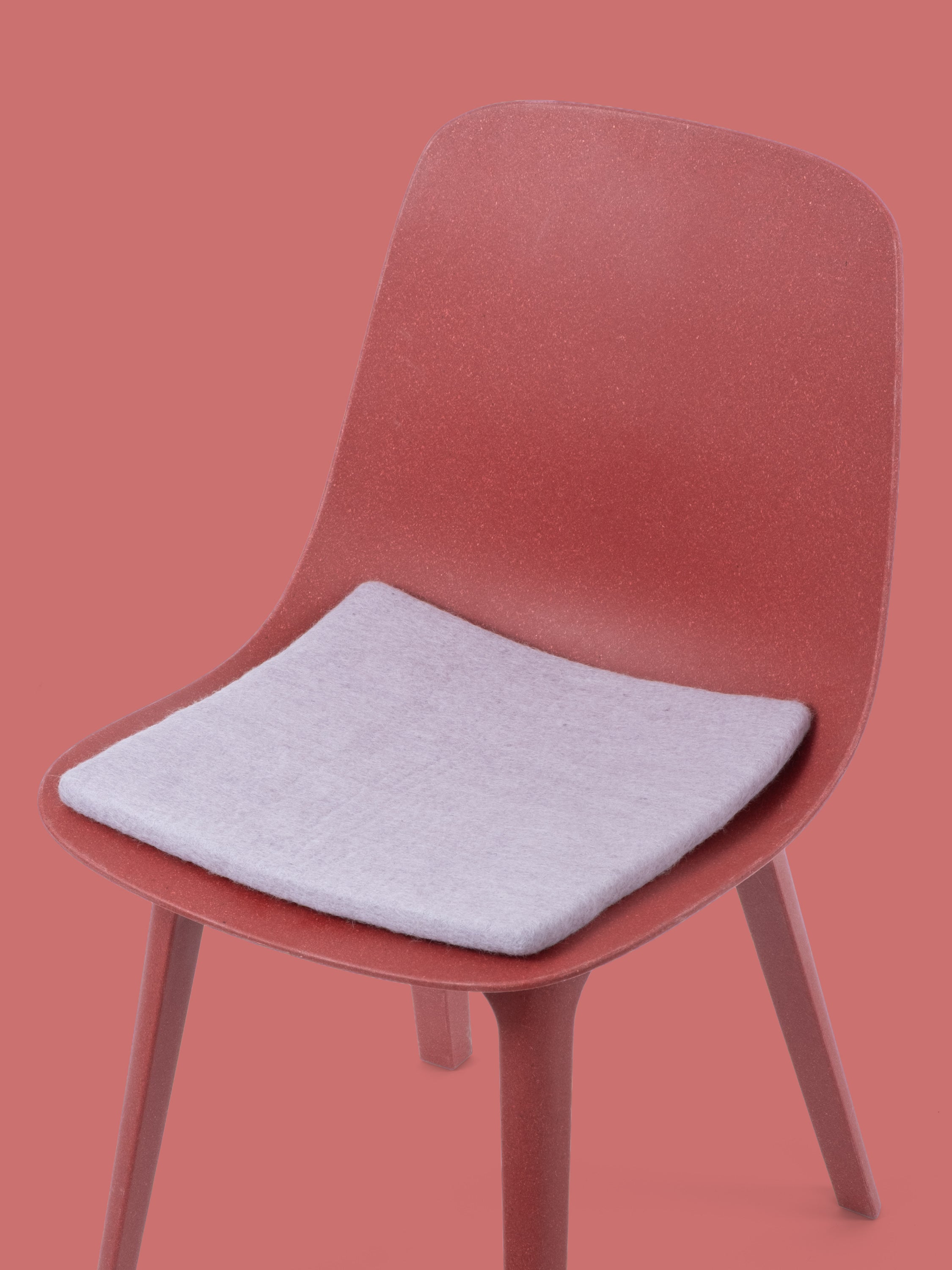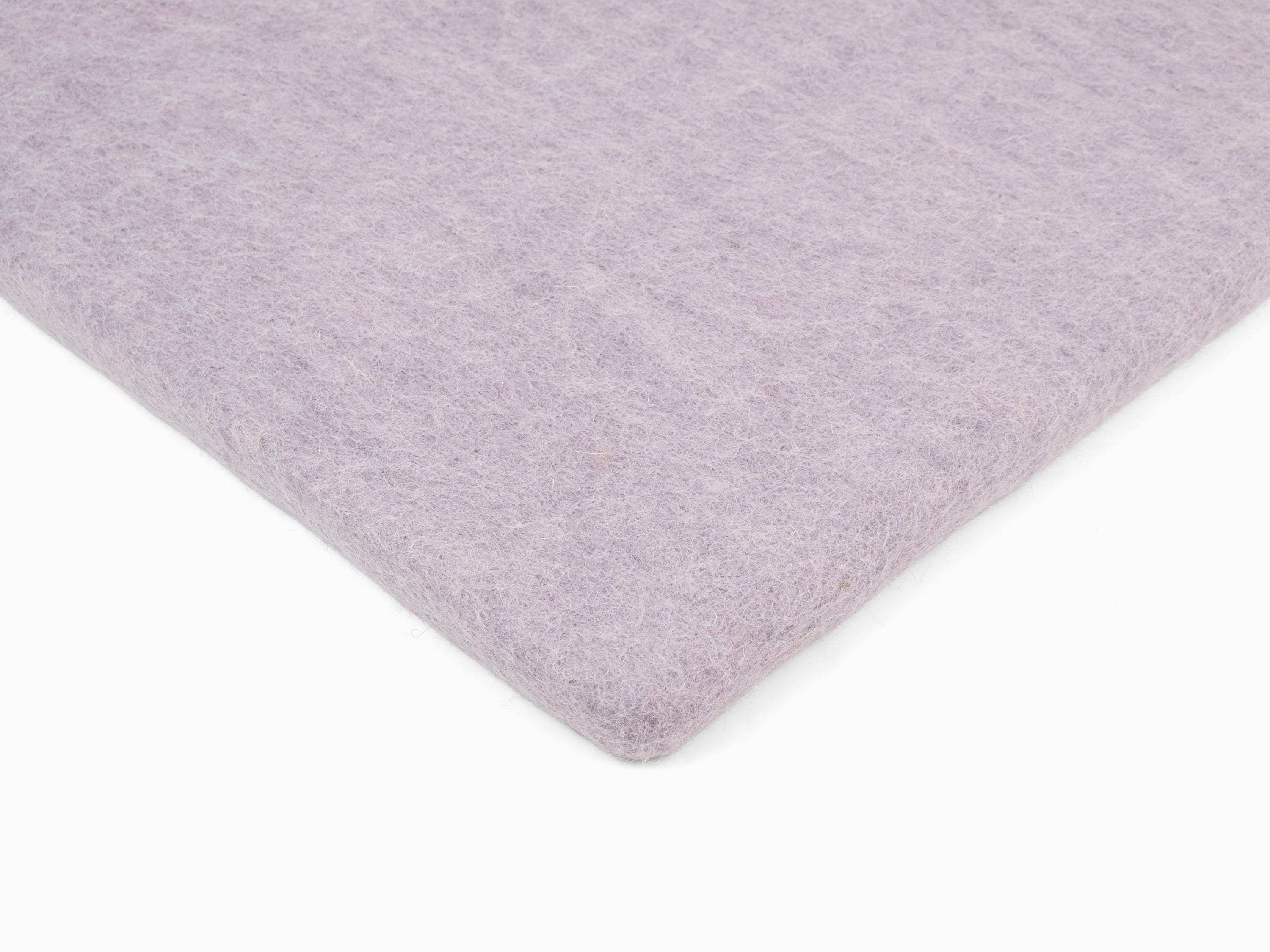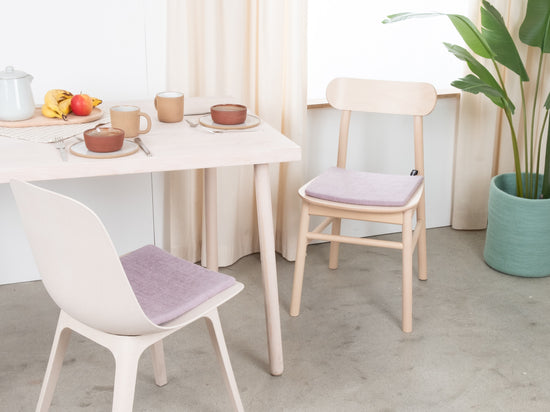 Quadratische, hellviolette flache Sitzauflage aus reiner Schurwolle.