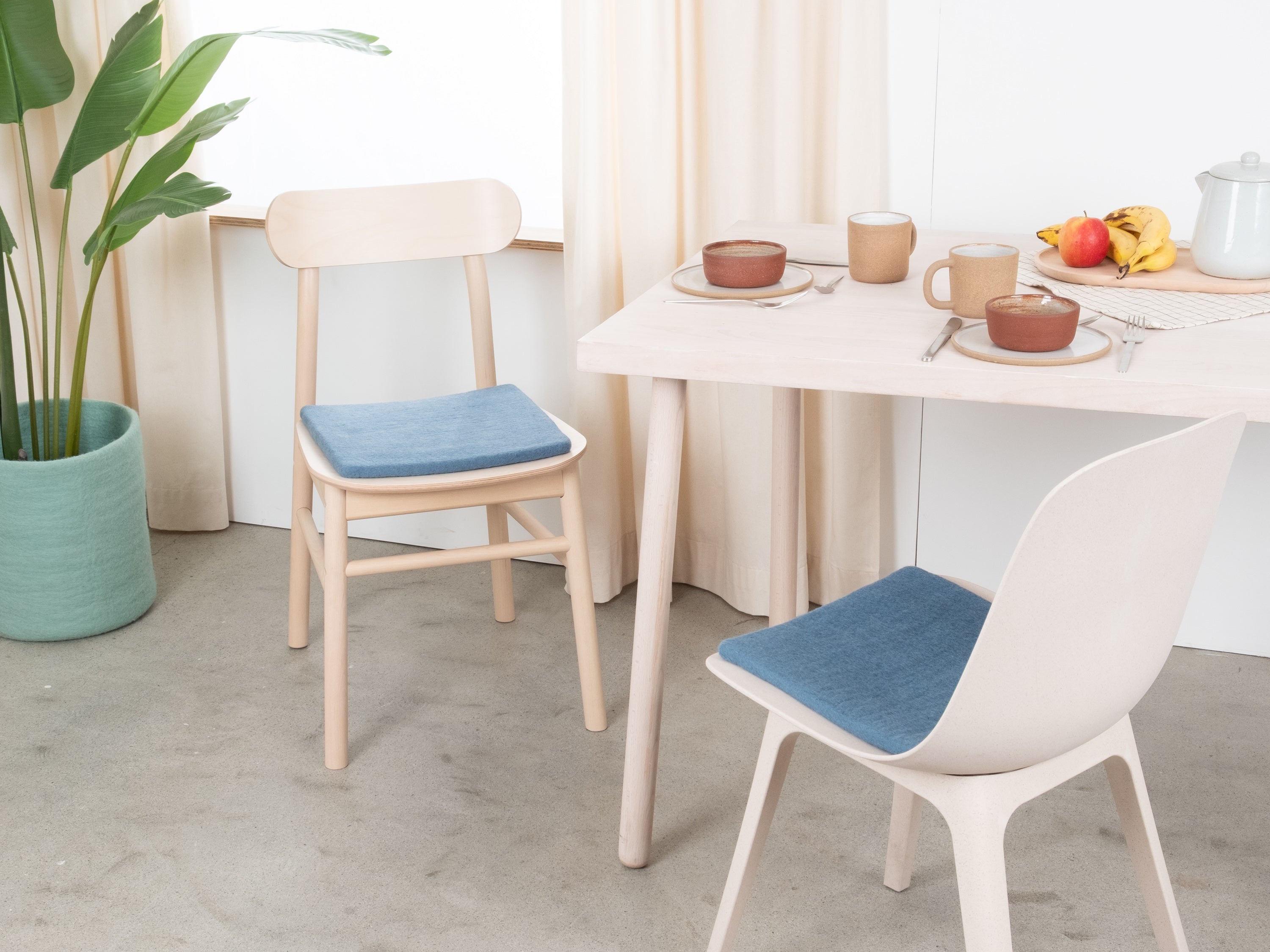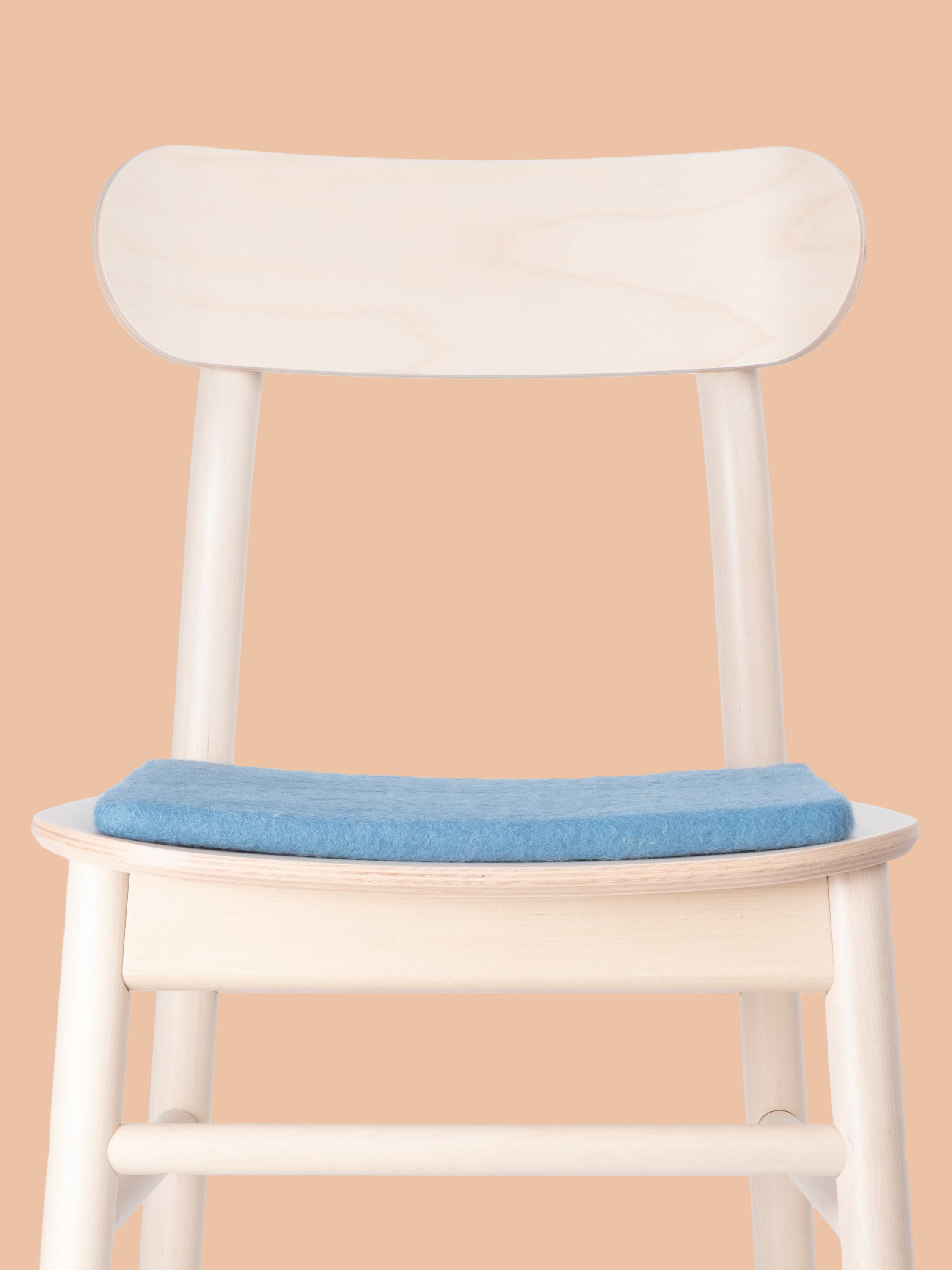 Die blaue, flache Sitzauflage Nilo bringt Wärme und Weichheit auf deinen Lieblingsstuhl. Gefertigt aus reiner Schurwolle, von Hand in Nepal hergestellt und unter fairen Bedingungen produziert. myfelt Sitzauflagen sind wasser- und schmutzabweisend und beidseitig verwendbar.