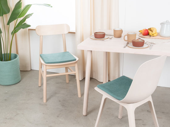 Die aquafarbene, flache Sitzauflage Taro bringt Wärme und Weichheit auf deinen Lieblingsstuhl. Gefertigt aus reiner Schurwolle, von Hand in Nepal hergestellt und unter fairen Bedingungen produziert. myfelt Sitzauflagen sind wasser- und schmutzabweisend und beidseitig verwendbar.