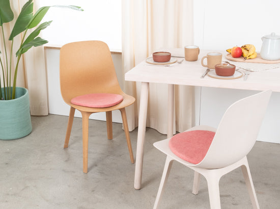 Die korallenrosa, flache Sitzauflage Vera bringt Wärme und Weichheit auf deinen Lieblingsstuhl. Gefertigt aus reiner Schurwolle, von Hand in Nepal hergestellt und unter fairen Bedingungen produziert. myfelt Sitzauflagen sind wasser- und schmutzabweisend und beidseitig verwendbar.