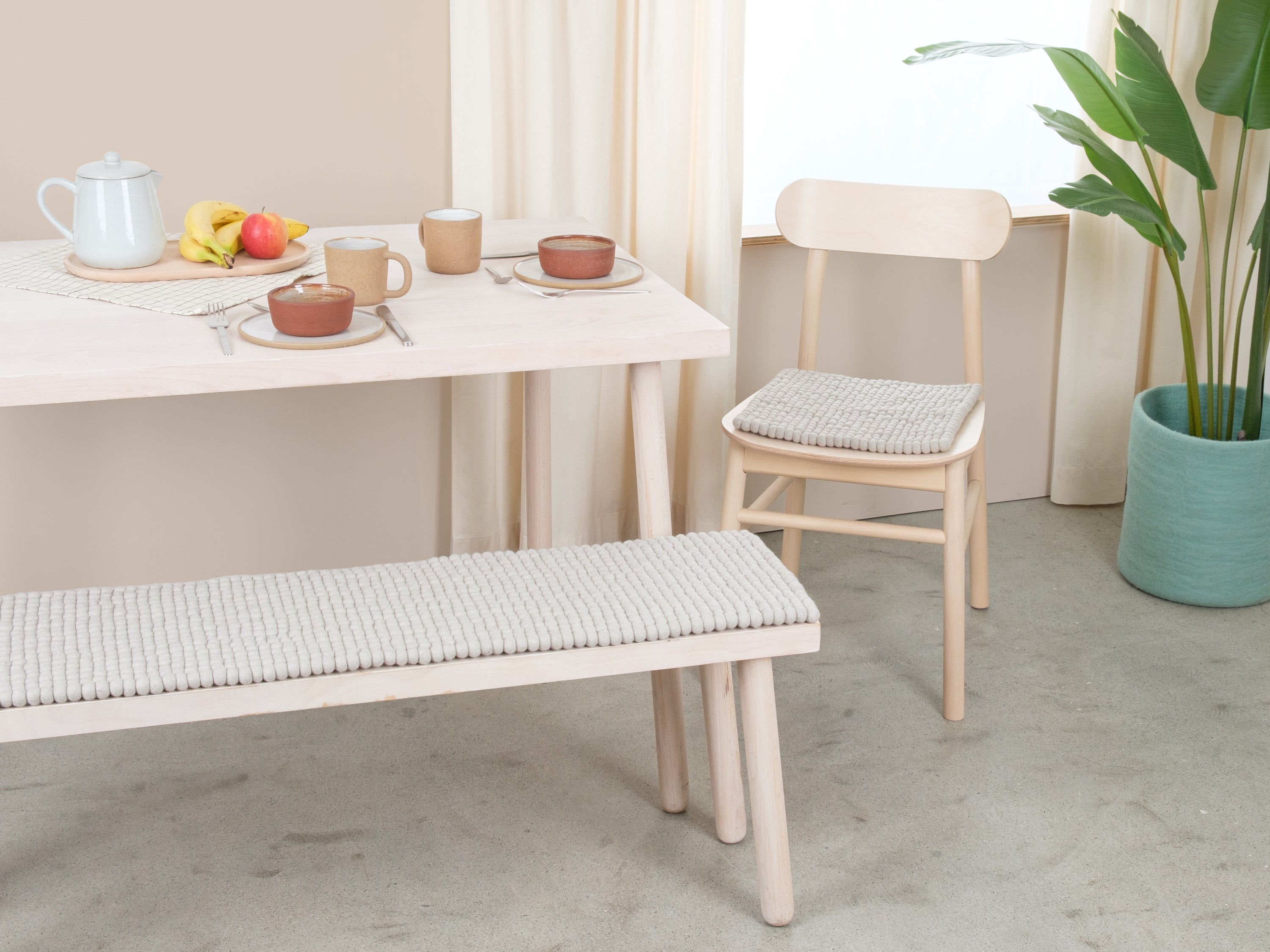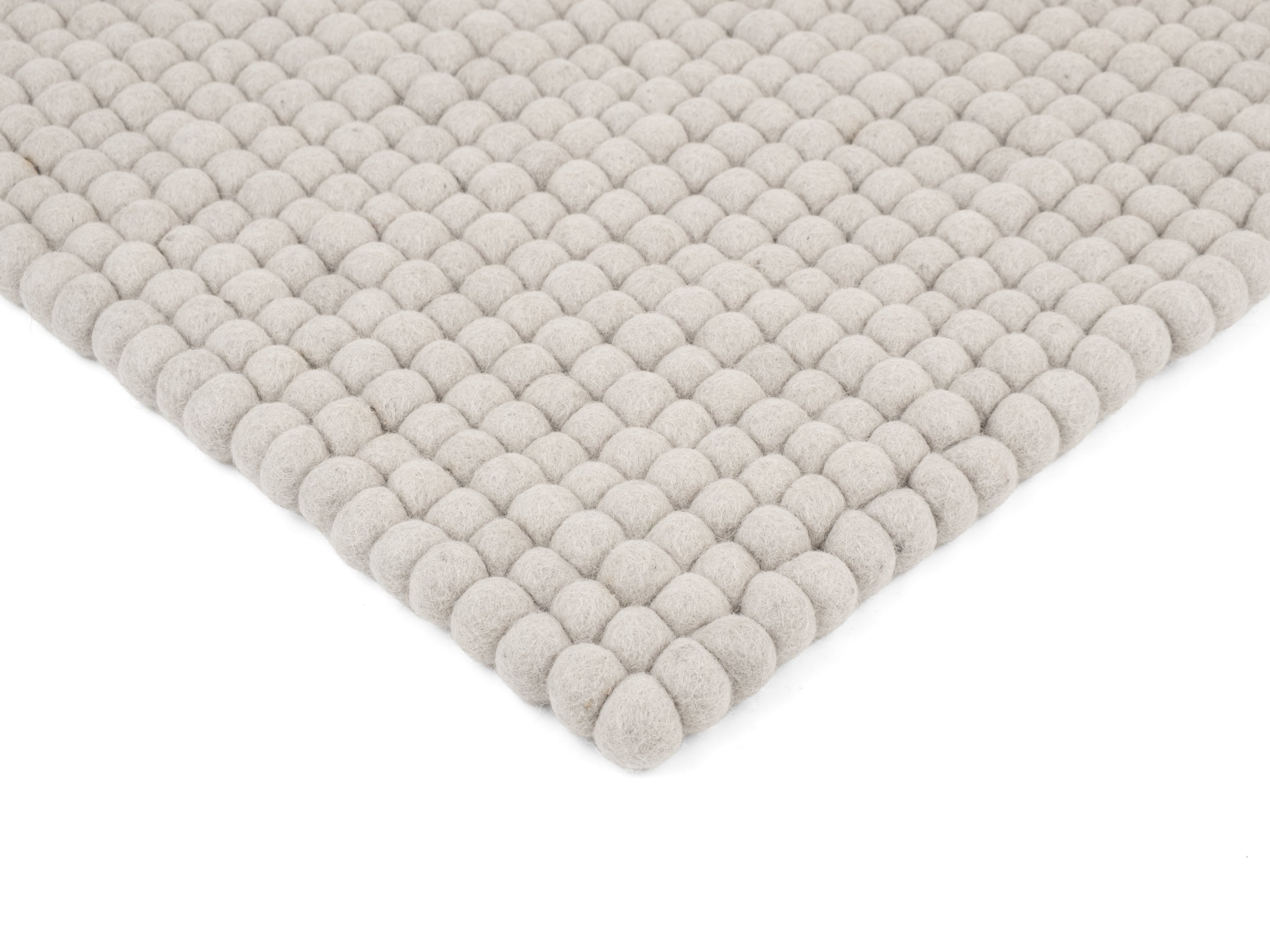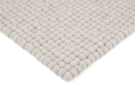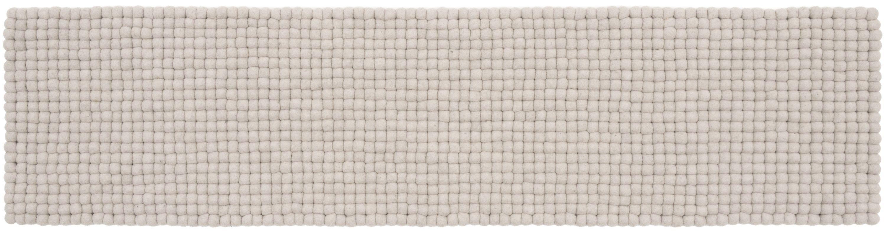 Hellgraue Filzkugel-Bankauflage aus Schurwolle in Ihrem Wunschmaß.