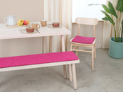 Pinke Filzkugel-Bankauflage aus Schurwolle in Ihrem Wunschmaß.