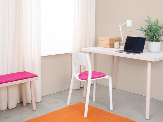 Die pinke Bankauflage Lilli bringt Wärme und Weichheit auf jede Bank. Gefertigt aus reiner Schurwolle, von Hand in Nepal hergestellt und unter fairen Bedingungen produziert. myfelt Bankauflagen sind wasser- und schmutzabweisend und beidseitig verwendbar.