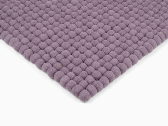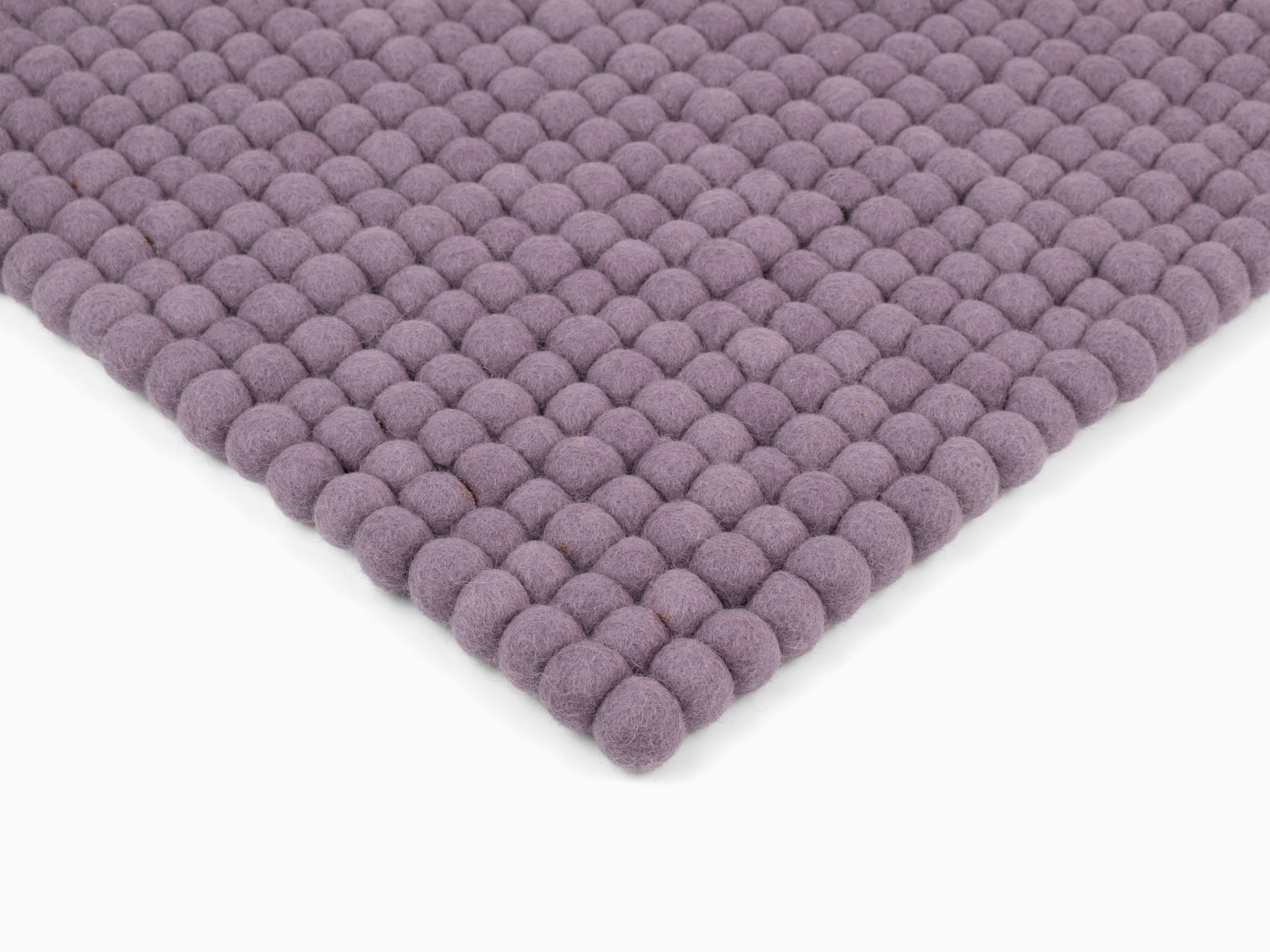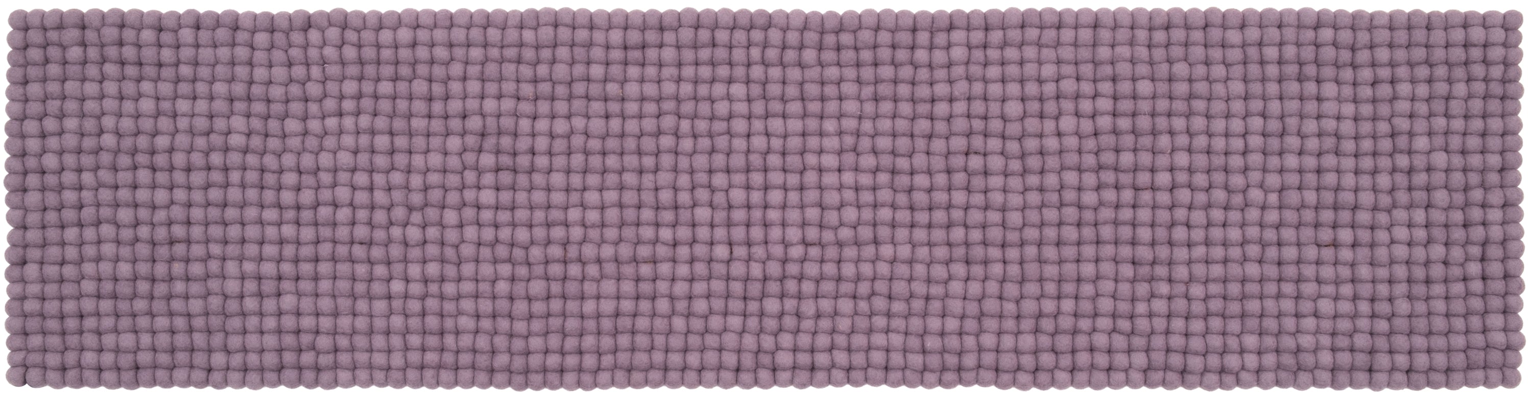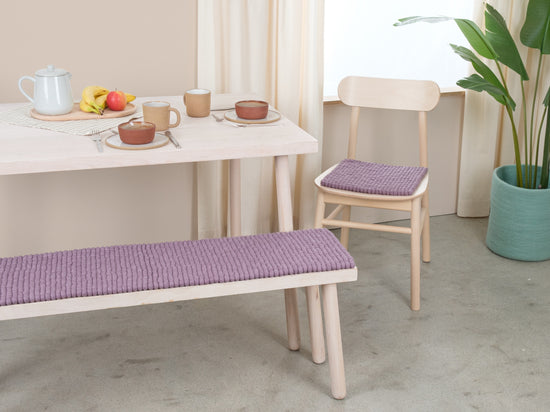 Fliedergraue Filzkugel-Bankauflage aus Schurwolle in Ihrem Wunschmaß.
