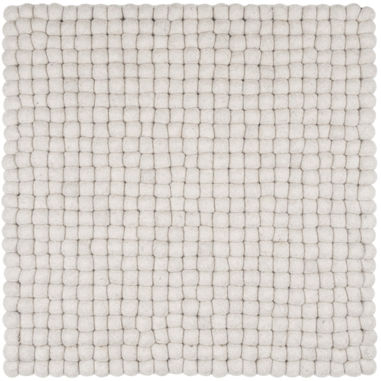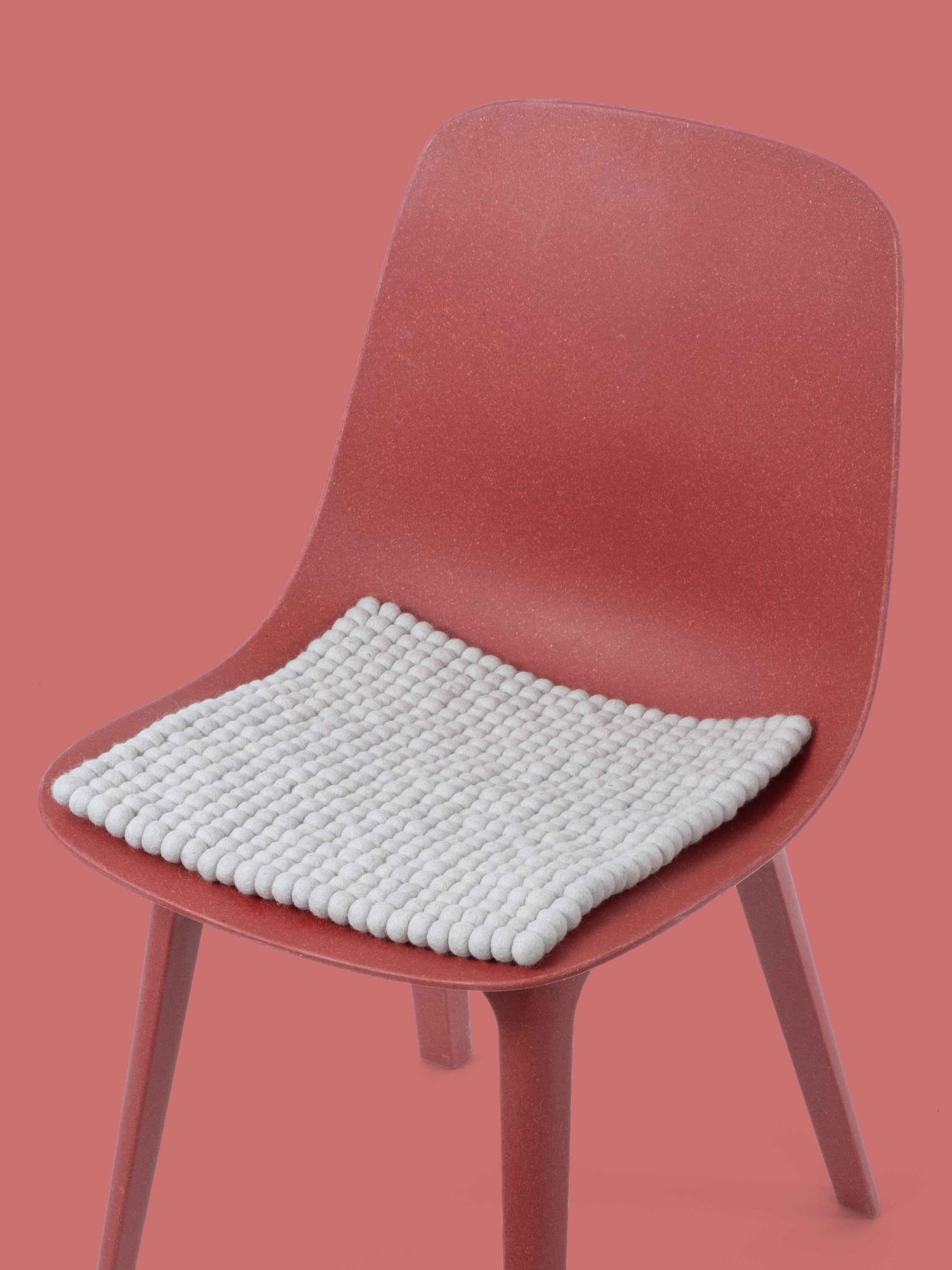 Quadratische, hellgraue Sitzauflage aus reiner Schurwolle.