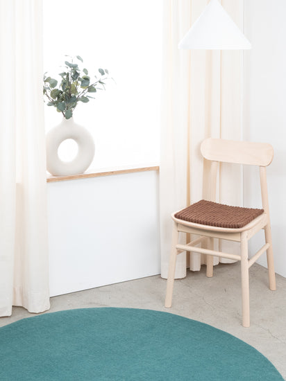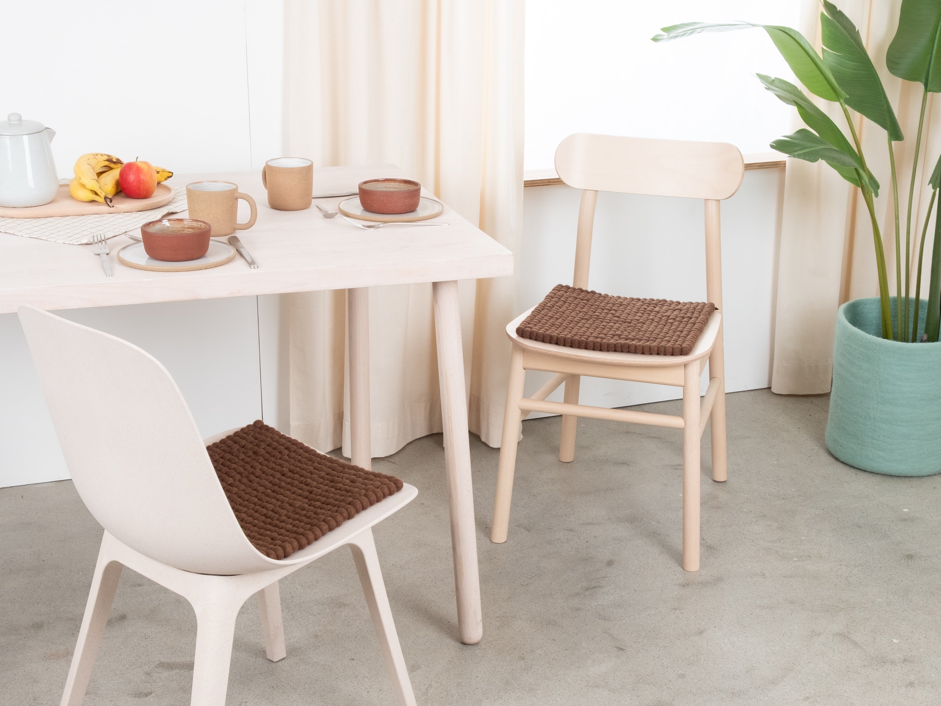 Die braune Sitzauflage Egon bringt Wärme und Weichheit auf deinen Lieblingsstuhl. Gefertigt aus reiner Schurwolle, von Hand in Nepal hergestellt und unter fairen Bedingungen produziert. myfelt Sitzauflagen sind wasser- und schmutzabweisend und beidseitig verwendbar.