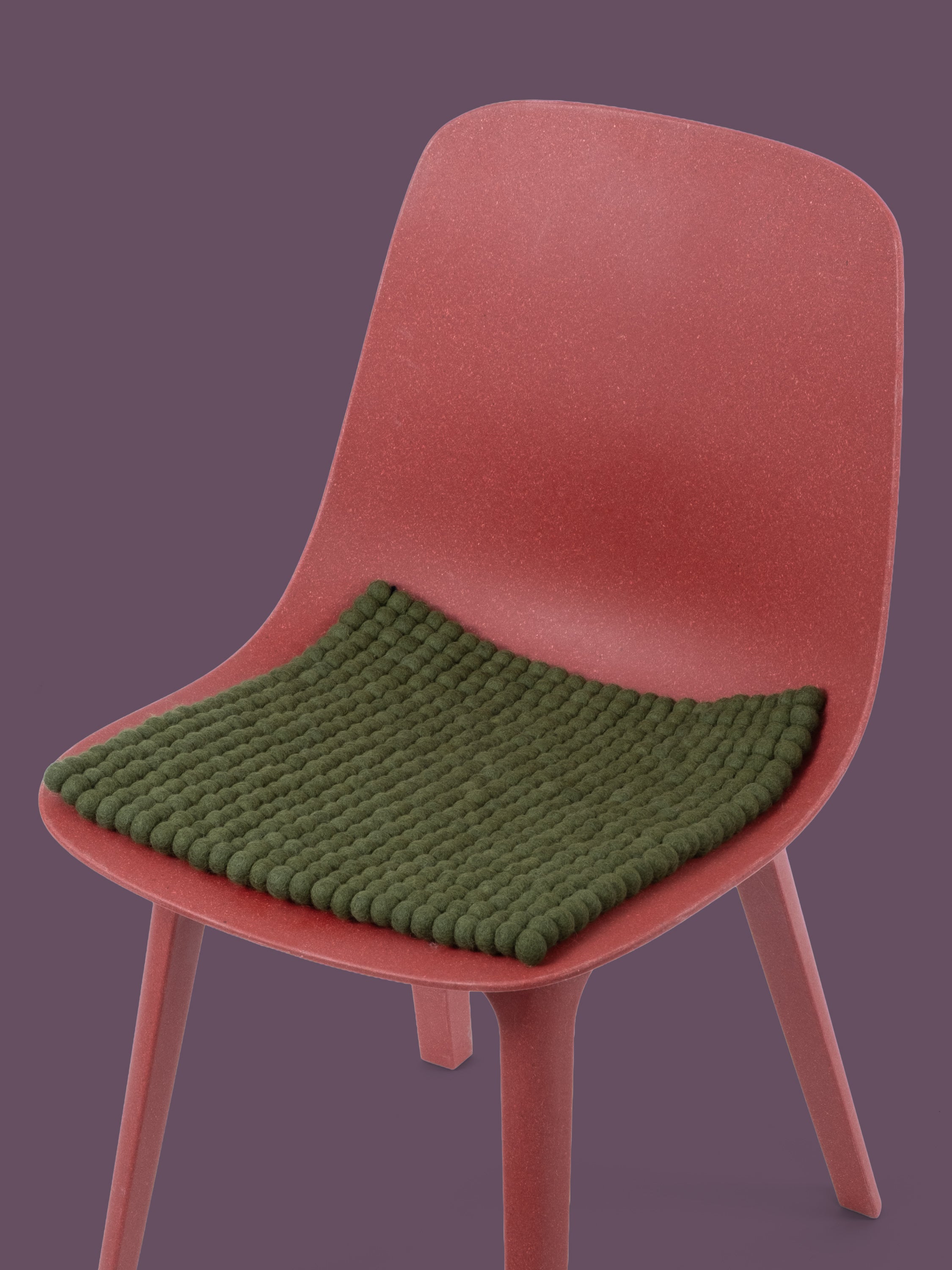 Quadratische, dunkelgrüne Sitzauflage aus reiner Schurwolle.