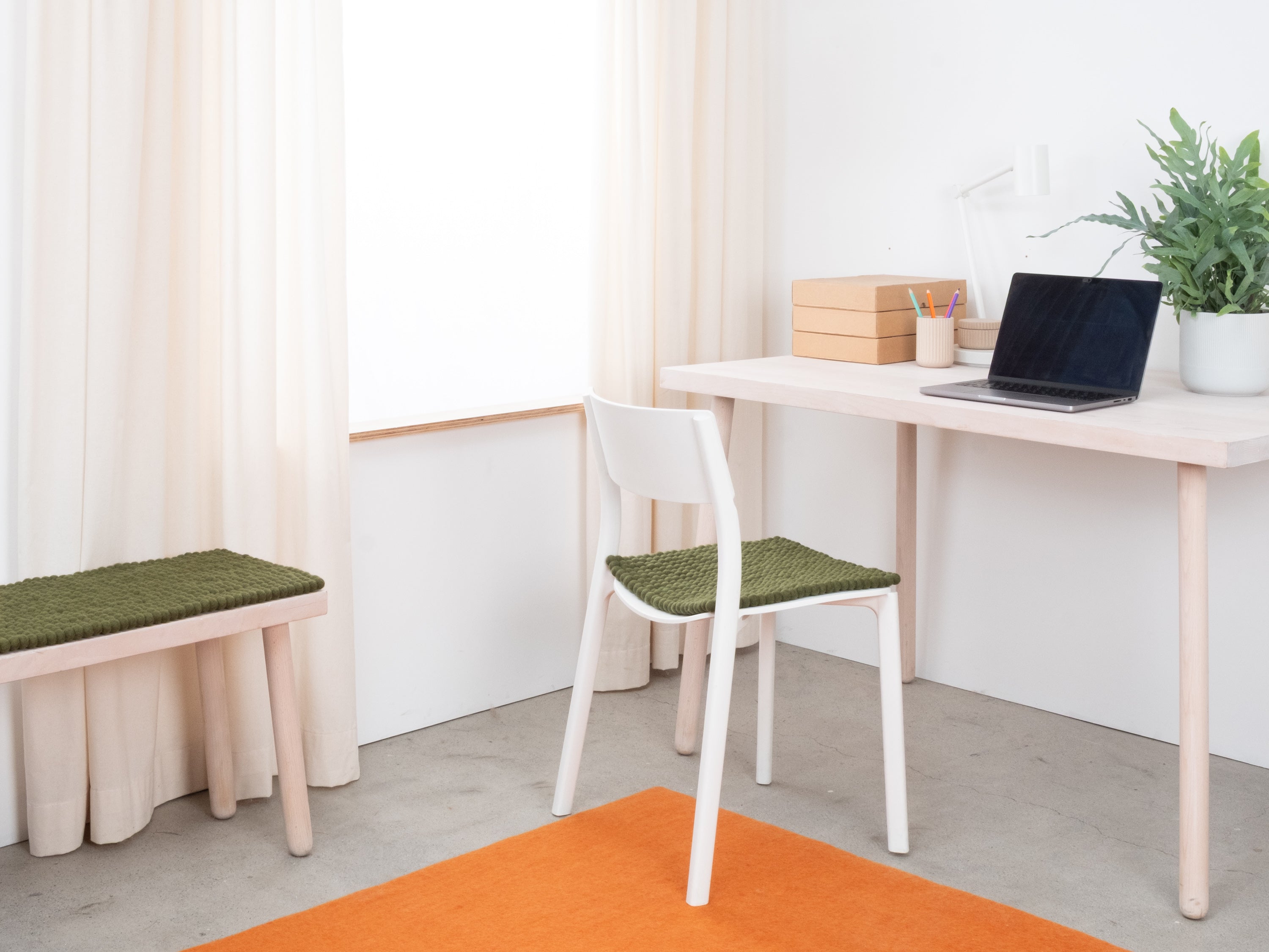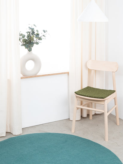 Die dunkelgrüne Sitzauflage Jost bringt Wärme und Weichheit auf deinen Lieblingsstuhl. Gefertigt aus reiner Schurwolle, von Hand in Nepal hergestellt und unter fairen Bedingungen produziert. myfelt Sitzauflagen sind wasser- und schmutzabweisend und beidseitig verwendbar.