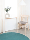 Die graue Sitzauflage Kian bringt Wärme und Weichheit auf deinen Lieblingsstuhl. Gefertigt aus reiner Schurwolle, von Hand in Nepal hergestellt und unter fairen Bedingungen produziert. myfelt Sitzauflagen sind wasser- und schmutzabweisend und beidseitig verwendbar.