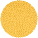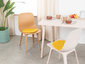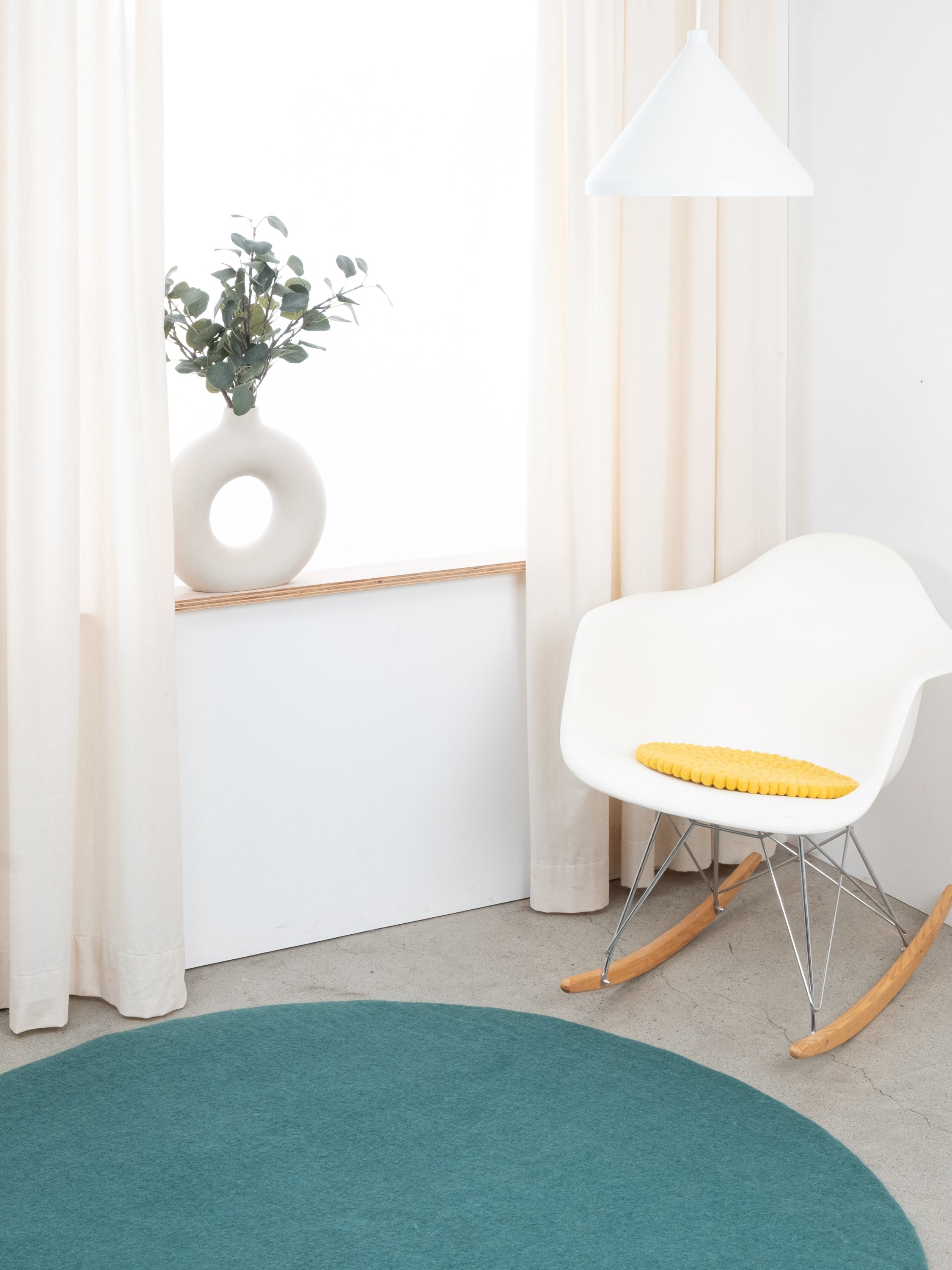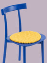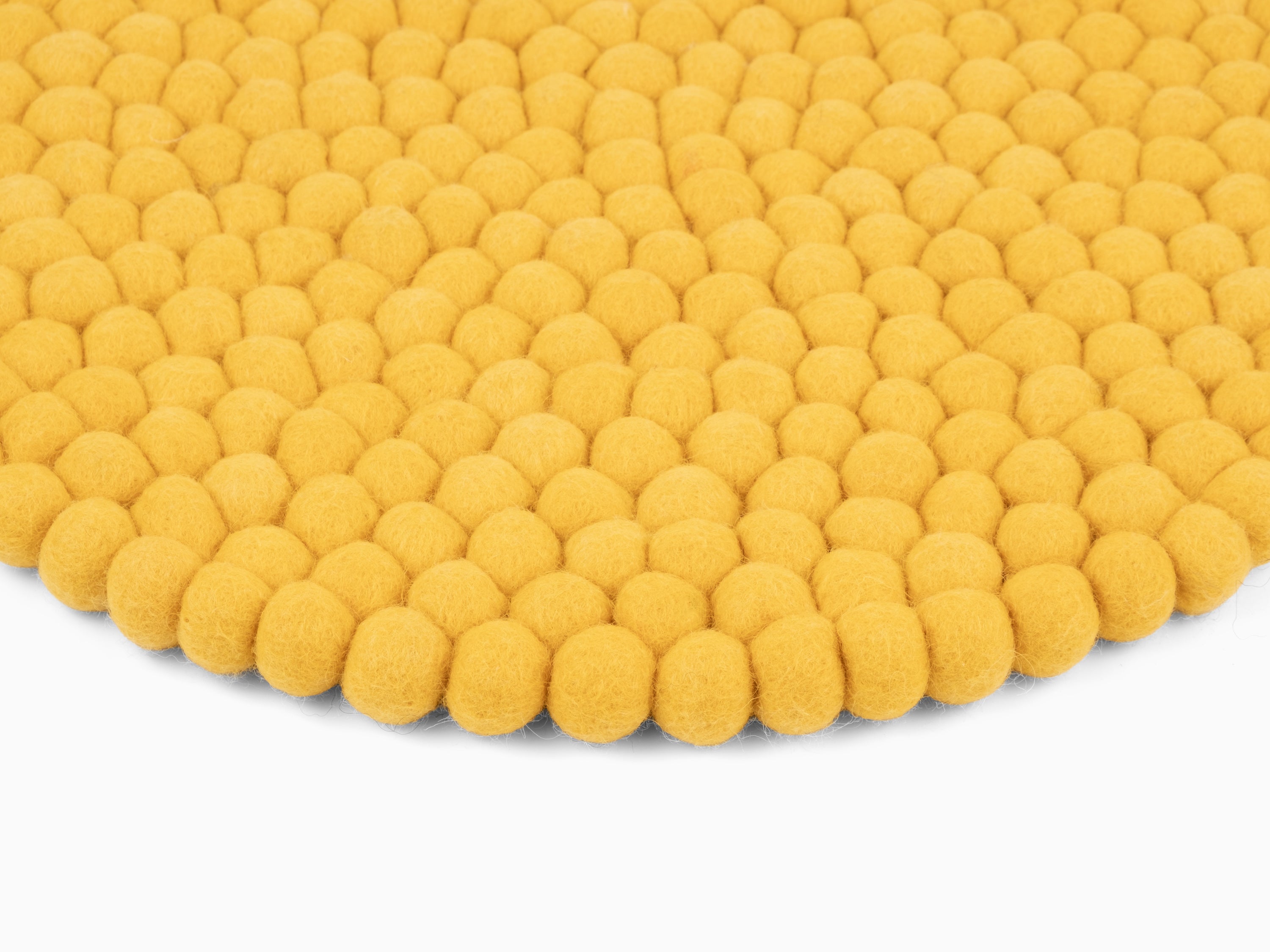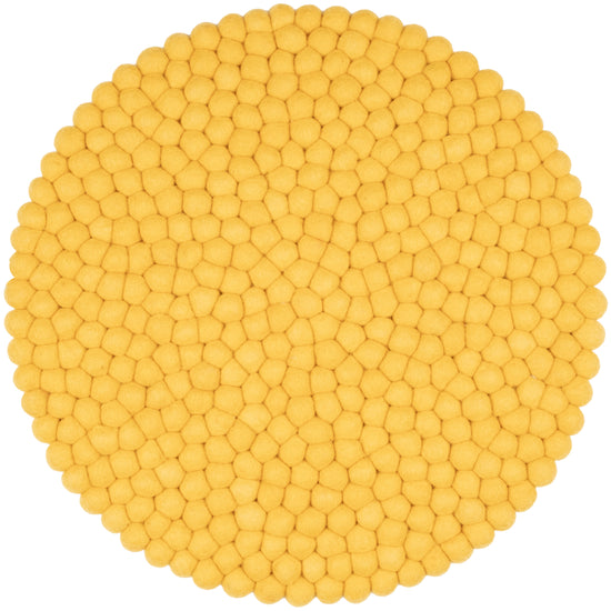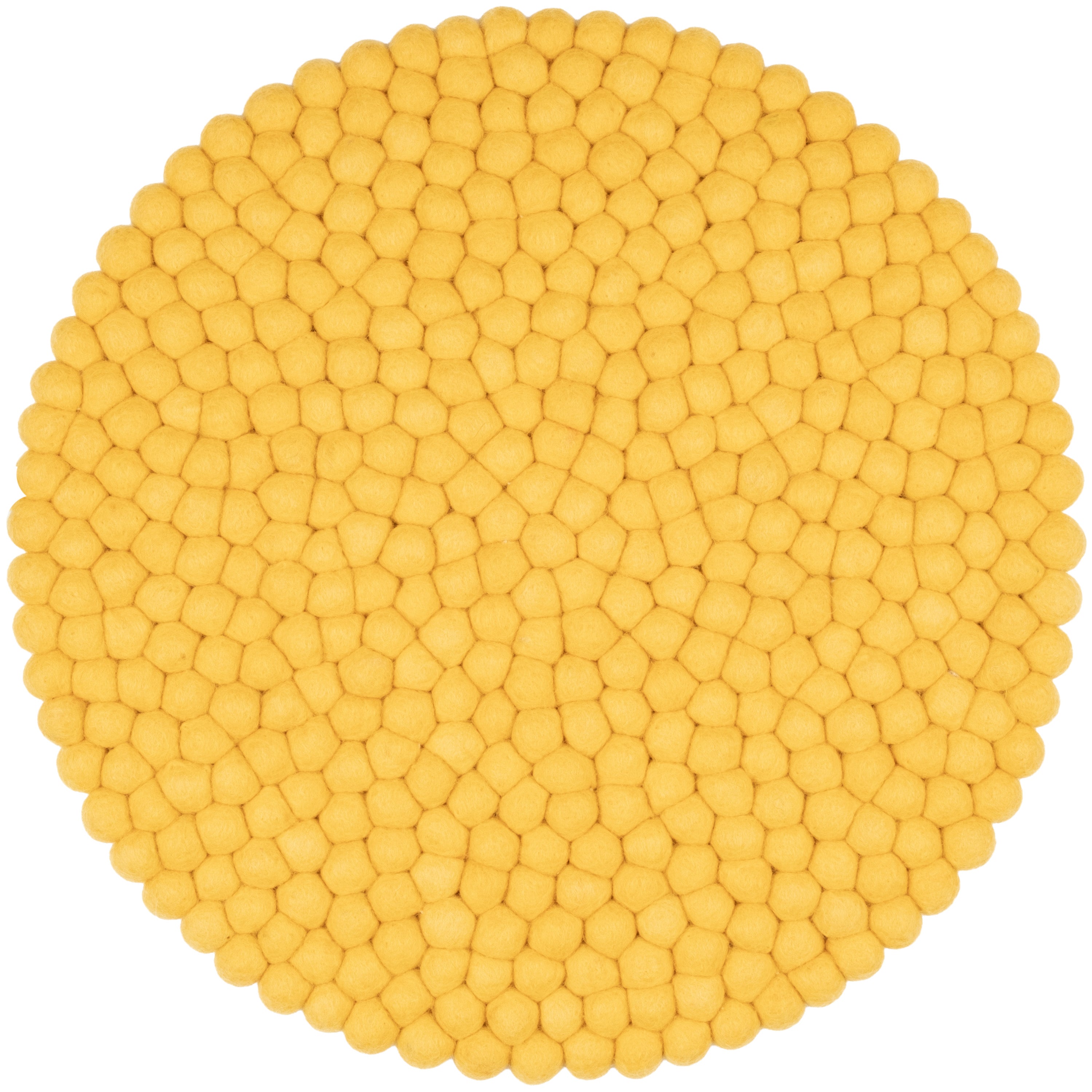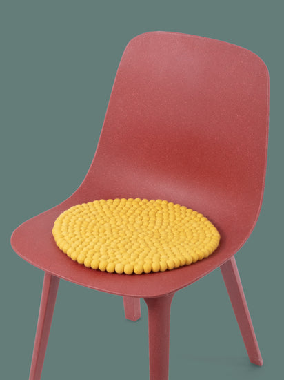 Runde, gelbe Sitzauflage aus reiner Schurwolle.