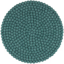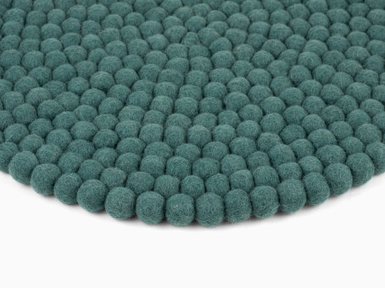 Runde, petrolfarbene Sitzauflage aus reiner Schurwolle.
