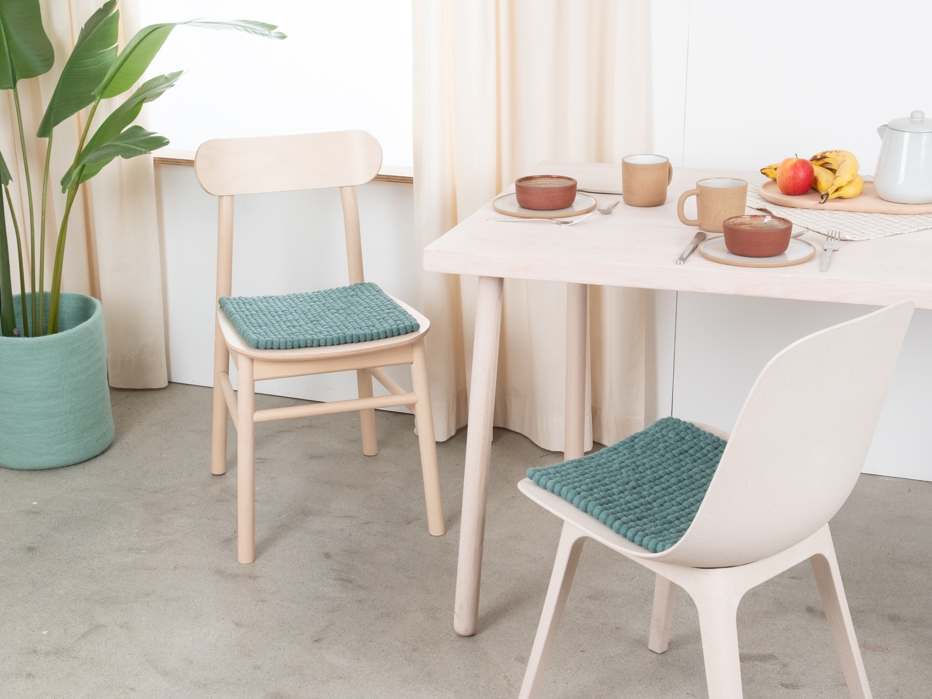 Die aquafarbene Sitzauflage Taro bringt Wärme und Weichheit auf deinen Lieblingsstuhl. Gefertigt aus reiner Schurwolle, von Hand in Nepal hergestellt und unter fairen Bedingungen produziert. myfelt Sitzauflagen sind wasser- und schmutzabweisend und beidseitig verwendbar.
