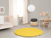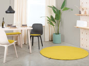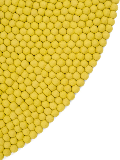 Runder Filzkugelteppich, hergestellt aus reiner Schurwolle.