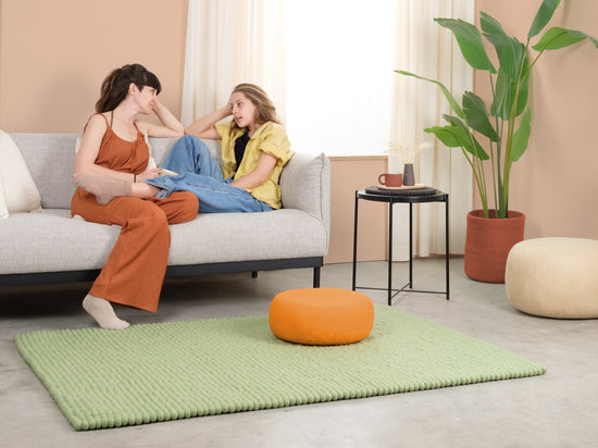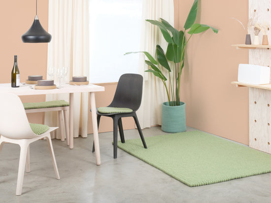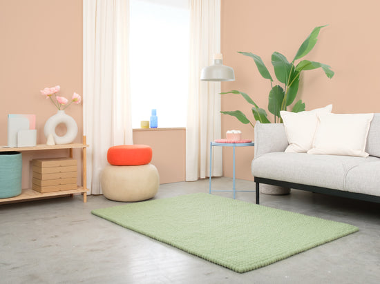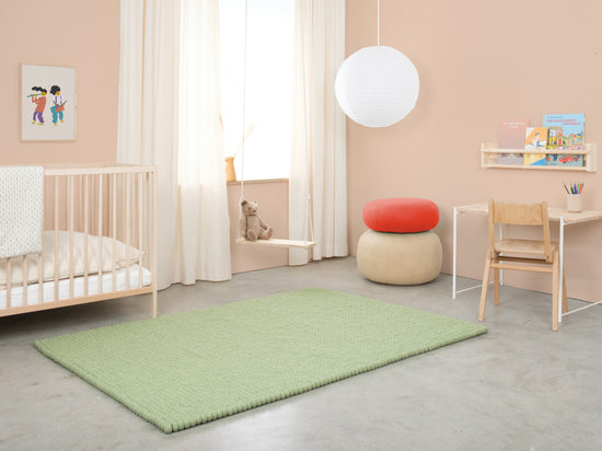 Lasse ist ein Filzkugelteppich in sanftem Salbeigrün. Er bringt Ruhe und Leichtigkeit in den Raum und harmoniert mit Holz, Weiß und Naturtönen. Weich im Tritt, robust im Alltag, von Natur aus schmutzabweisend. Handgefertigt in Nepal aus 100 % reiner Schurwolle.
