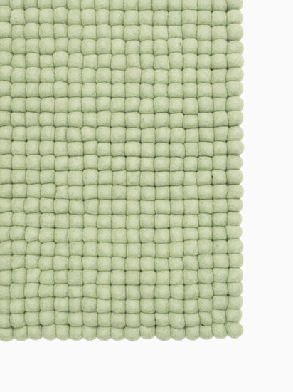Rechteckiger Filzkugelteppich, hergestellt aus reiner Schurwolle.