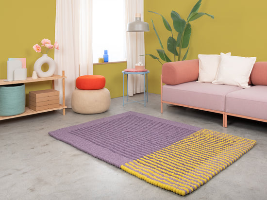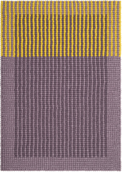 Rechteckiger Filzkugelteppich, hergestellt aus reiner Schurwolle.