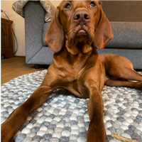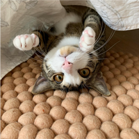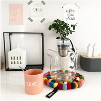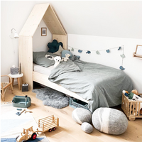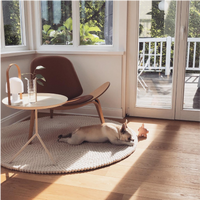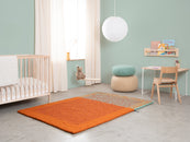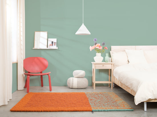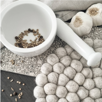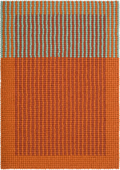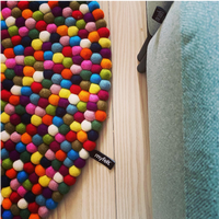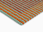 Rechteckiger Filzkugelteppich, hergestellt aus reiner Schurwolle.