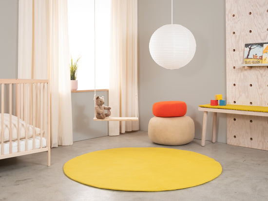 Kata ist ein Filzteppich in frischem Gelbgrün. Leuchtend, vital und voller Energie bringt er Bewegung in den Raum. Ob als fröhlicher Akzent im Wohnzimmer oder als Lichtpunkt im Arbeitsbereich. Kata sorgt für Lebendigkeit und Leichtigkeit. Weich, robust und pflegeleicht. Handgefertigt in Nepal aus 100 % reiner Schurwolle.
