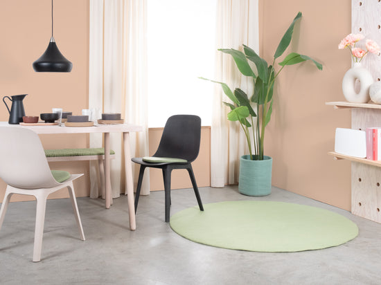 Lasse ist ein Filzteppich in sanftem Salbeigrün. Er bringt Ruhe und Leichtigkeit in den Raum und harmoniert mit Holz, Weiß und Naturtönen. Weich im Tritt, robust im Alltag, von Natur aus schmutzabweisend. Handgefertigt in Nepal aus 100 % reiner Schurwolle.