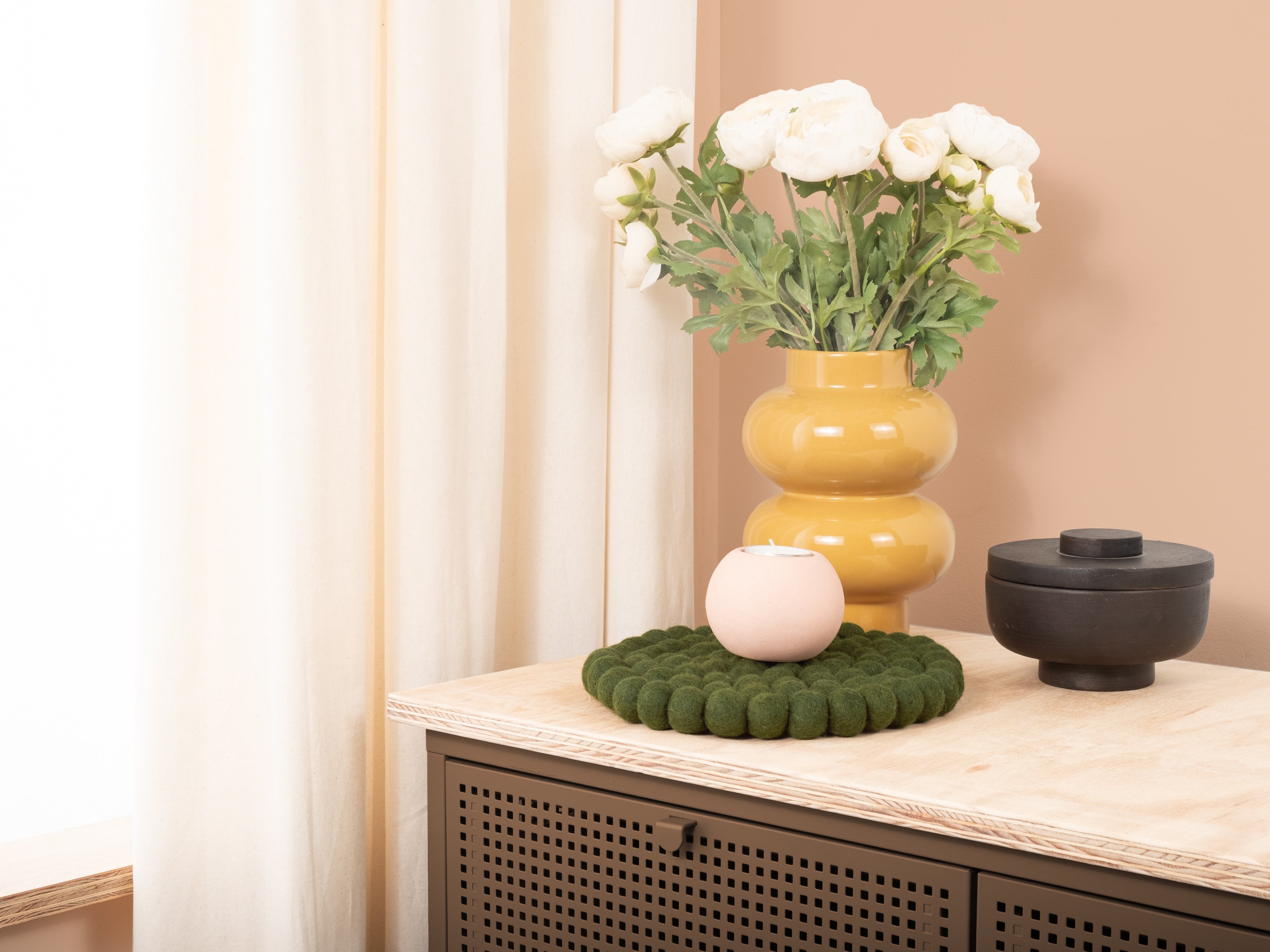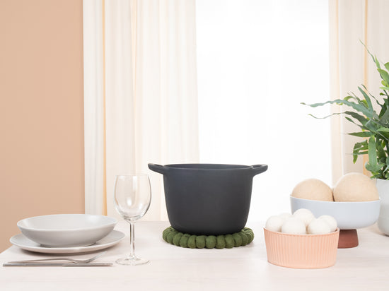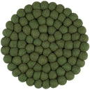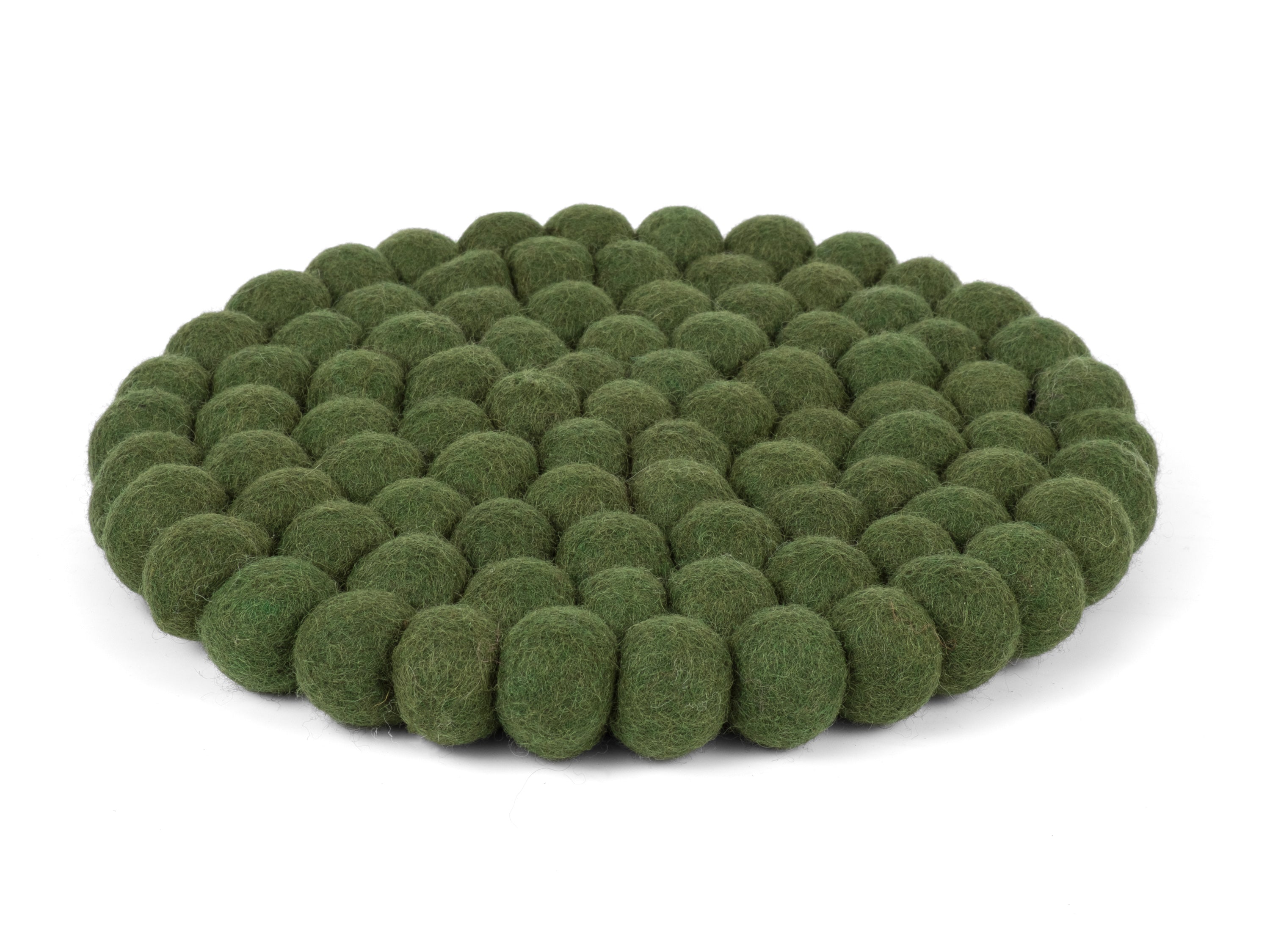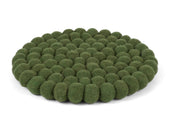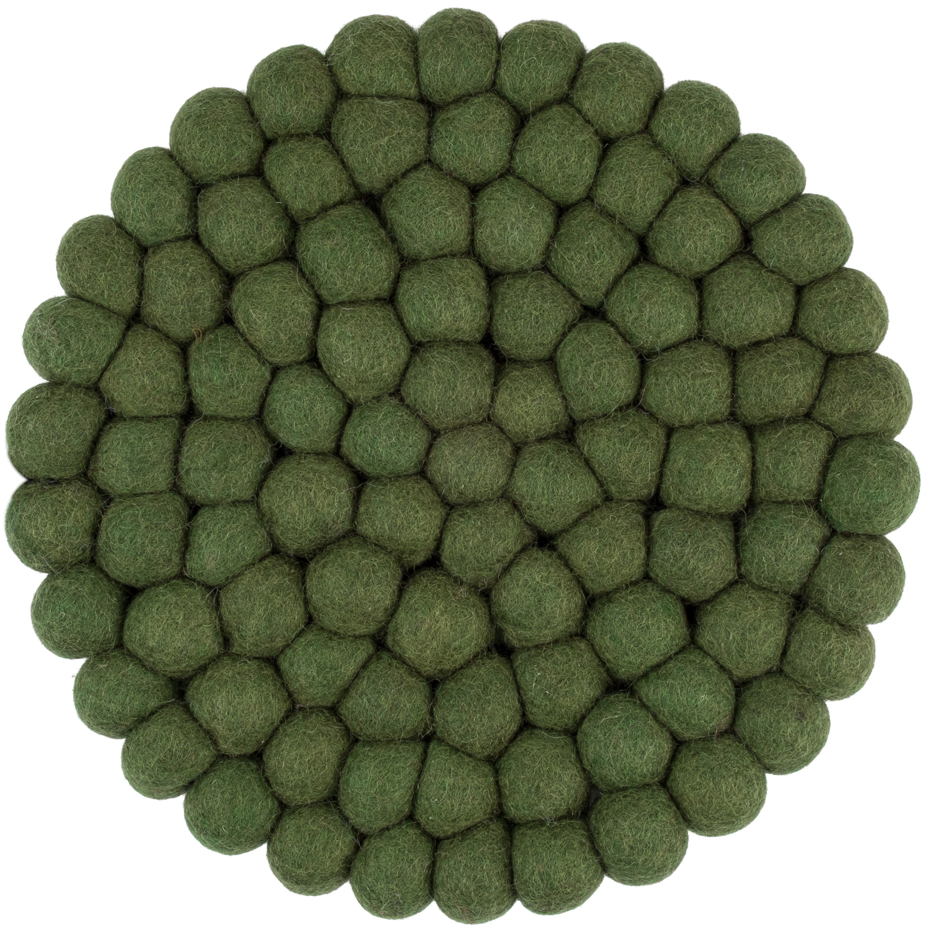 Runder, dunkelgrüner Topfuntersetzer aus reiner Schurwolle