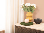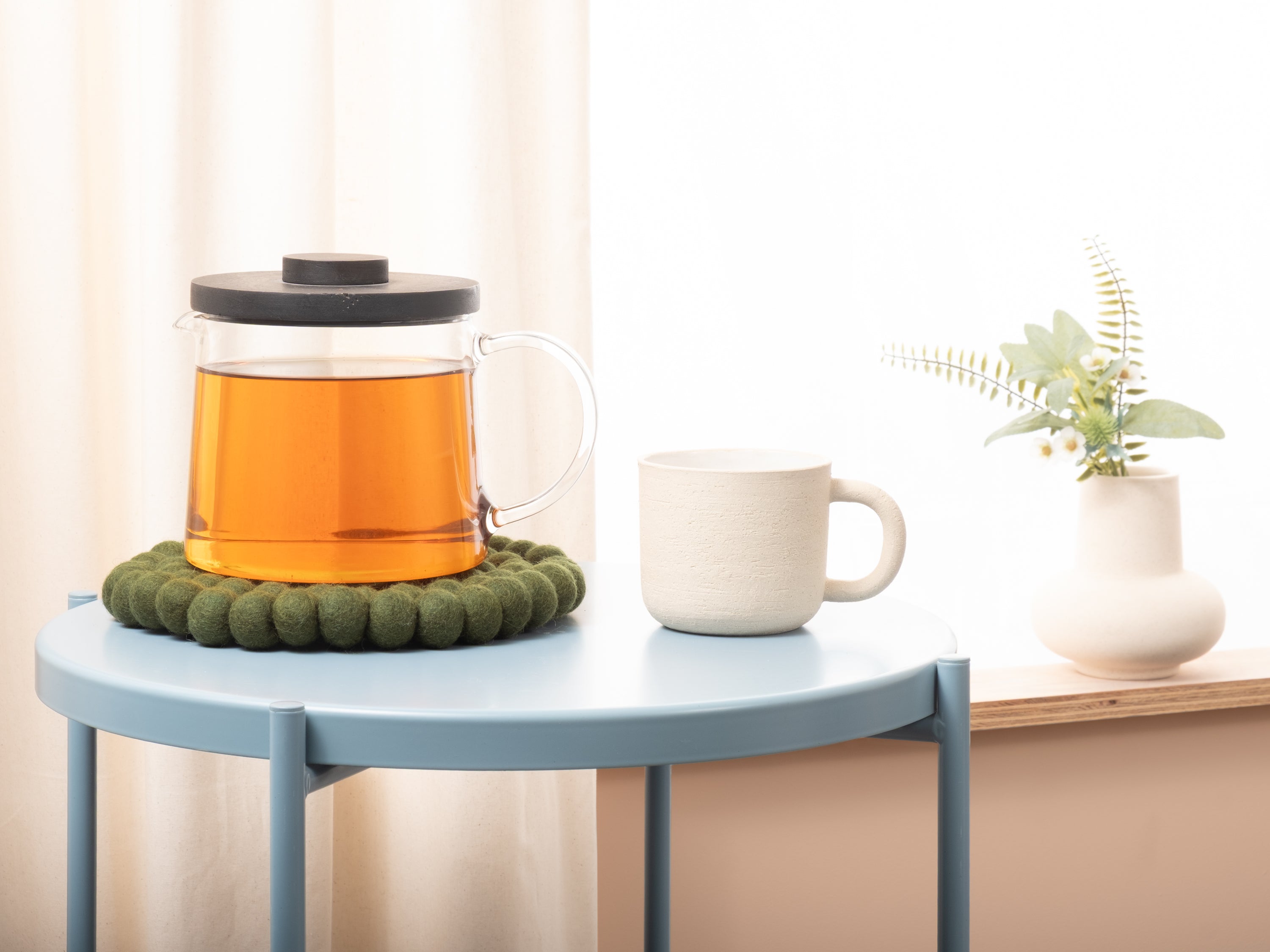 Der Topfuntersetzer Jost in der Farbe Dunkelgrün verbindet Funktion mit charmanter Optik. Robust, hitzebeständig, wasser- und schmutzabweisend sowie beidseitig verwendbar. Gefertigt aus reiner Schurwolle, von Hand in Nepal hergestellt und unter fairen Bedingungen produziert.