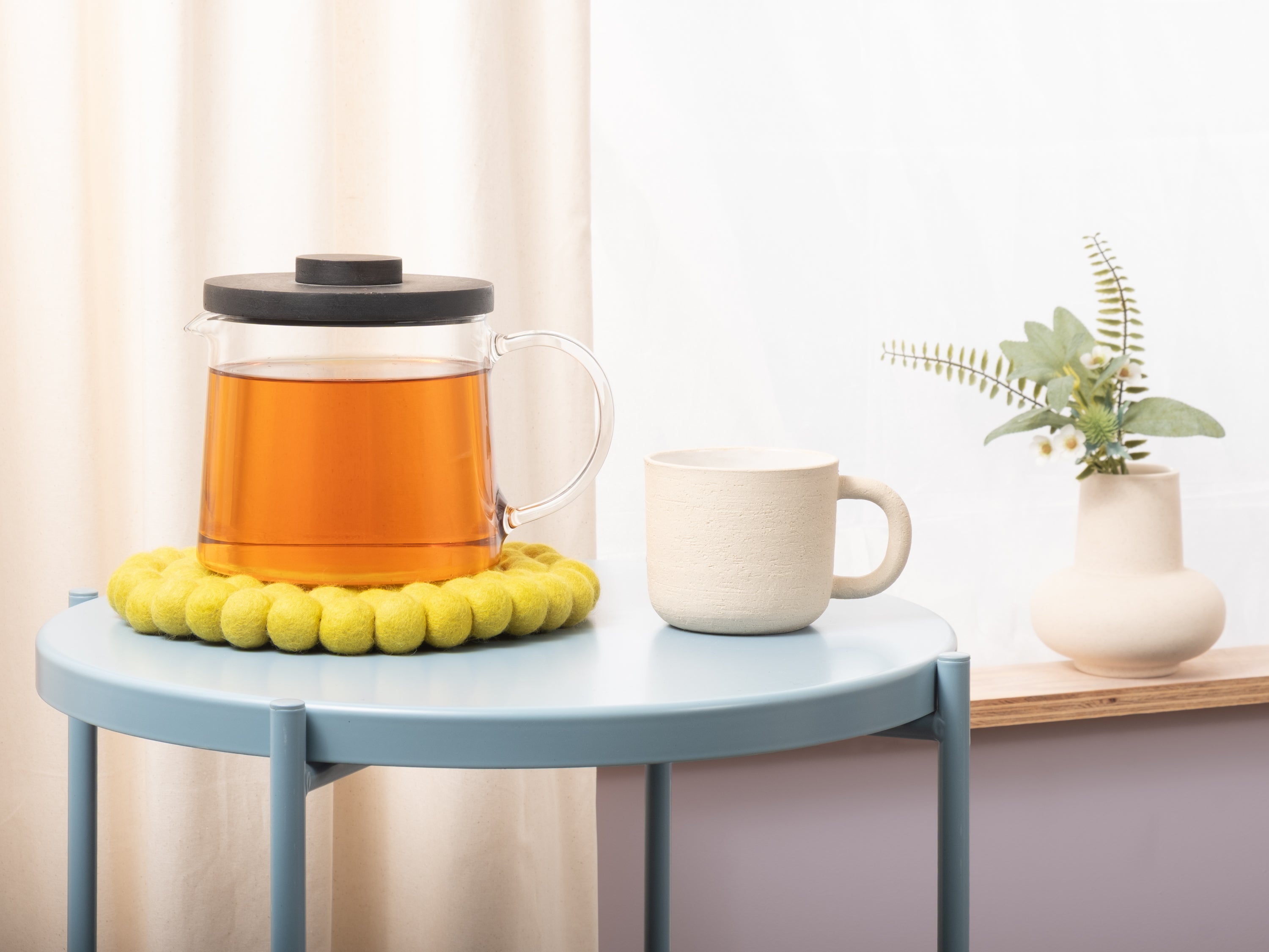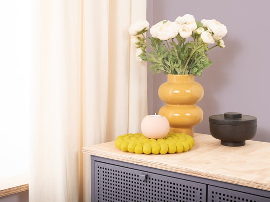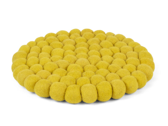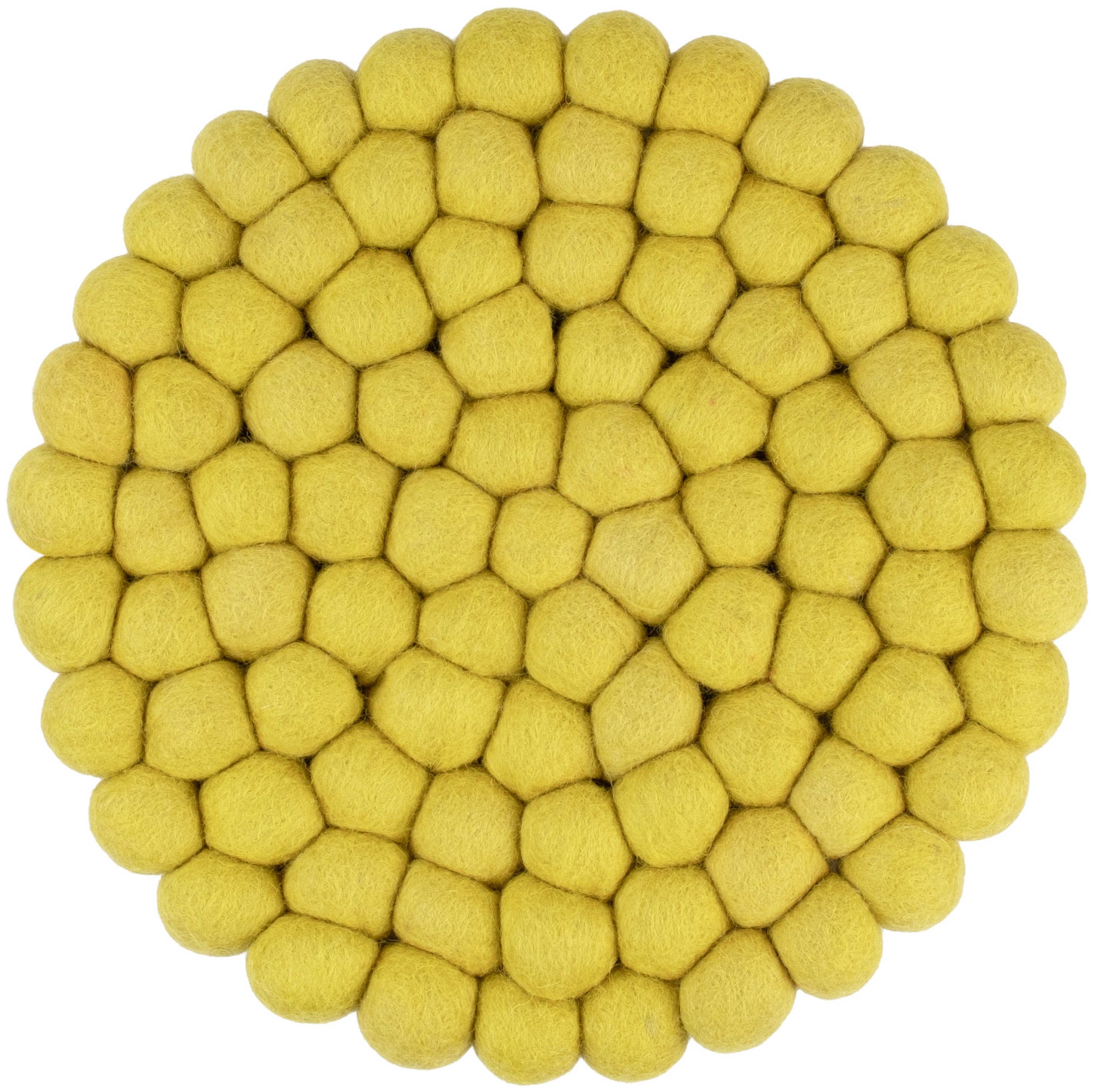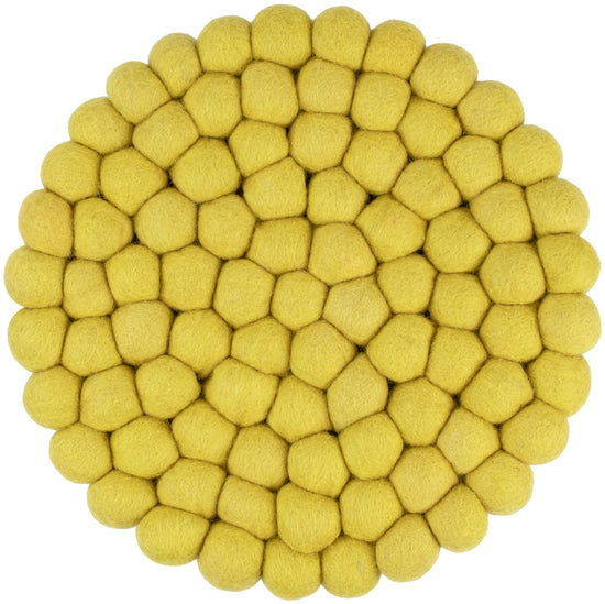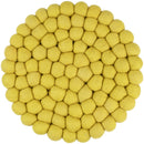Runder, grüngelber Topfuntersetzer aus reiner Schurwolle