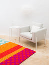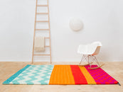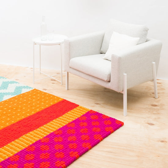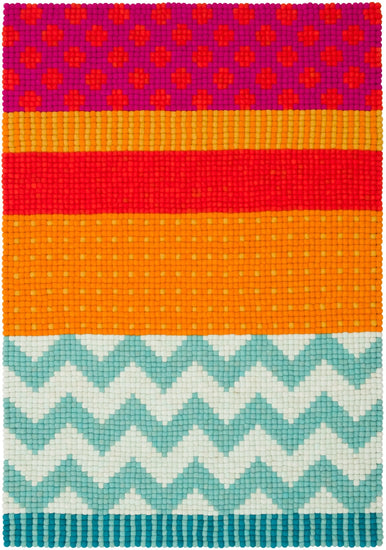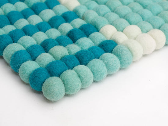 Rechteckiger Filzkugelteppich hergestellt aus reiner Schurwolle.