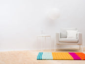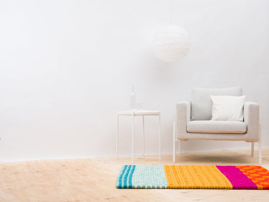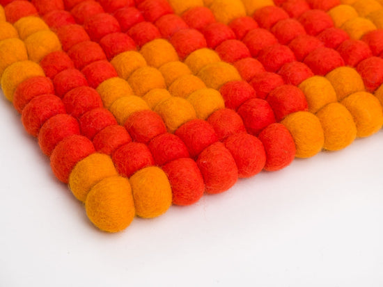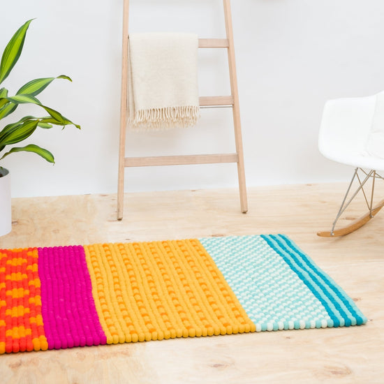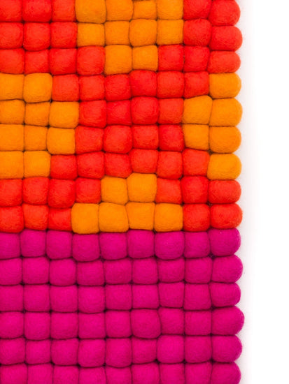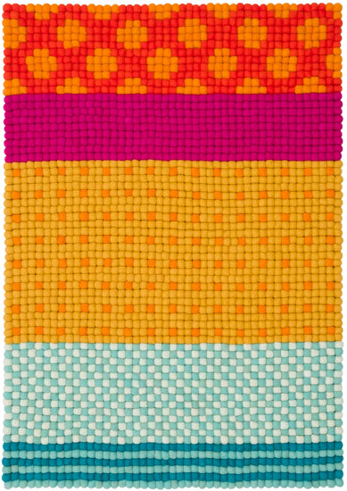 Rechteckiger Filzkugelteppich hergestellt aus reiner Schurwolle.