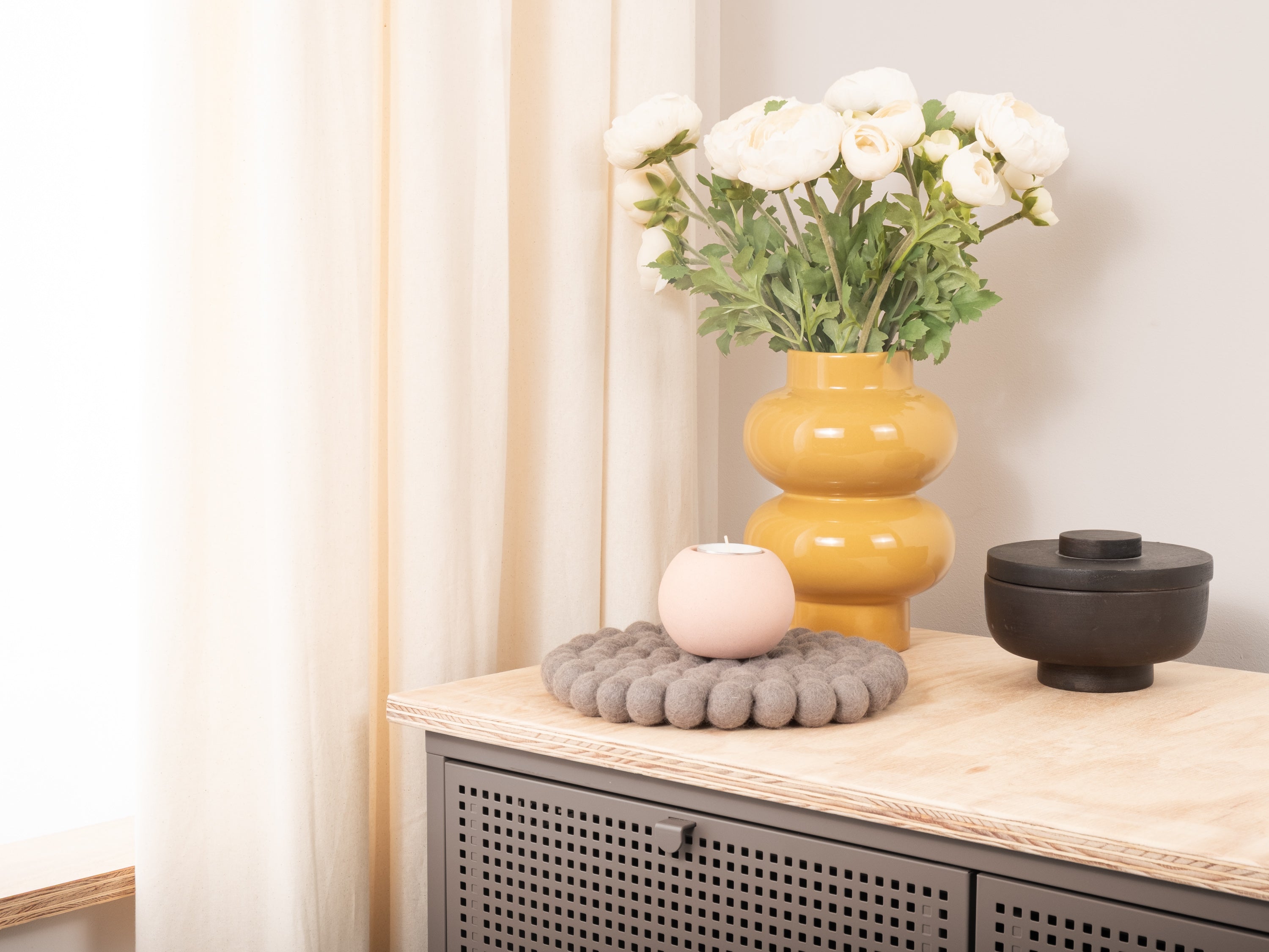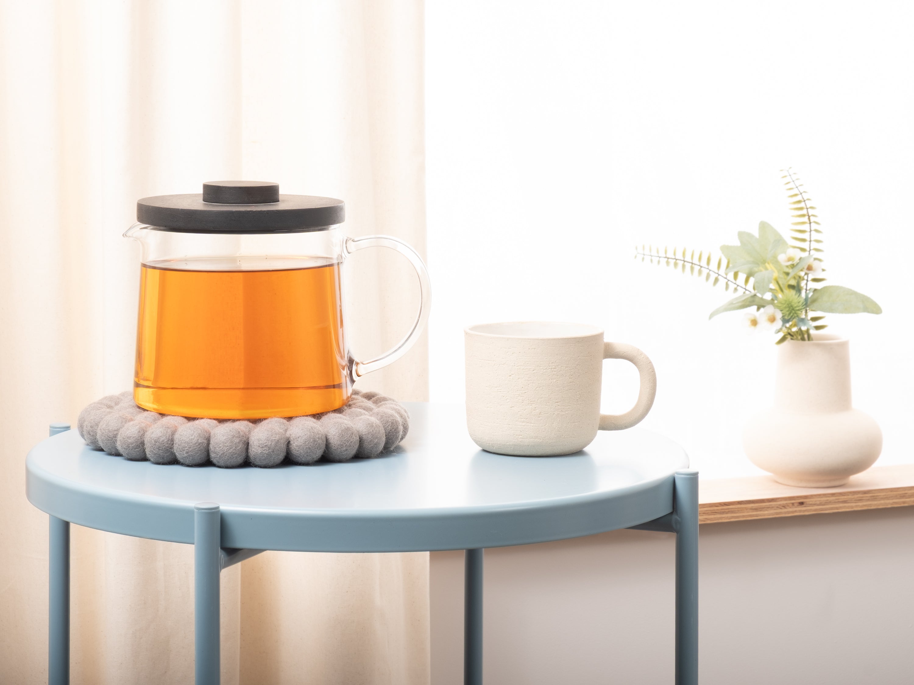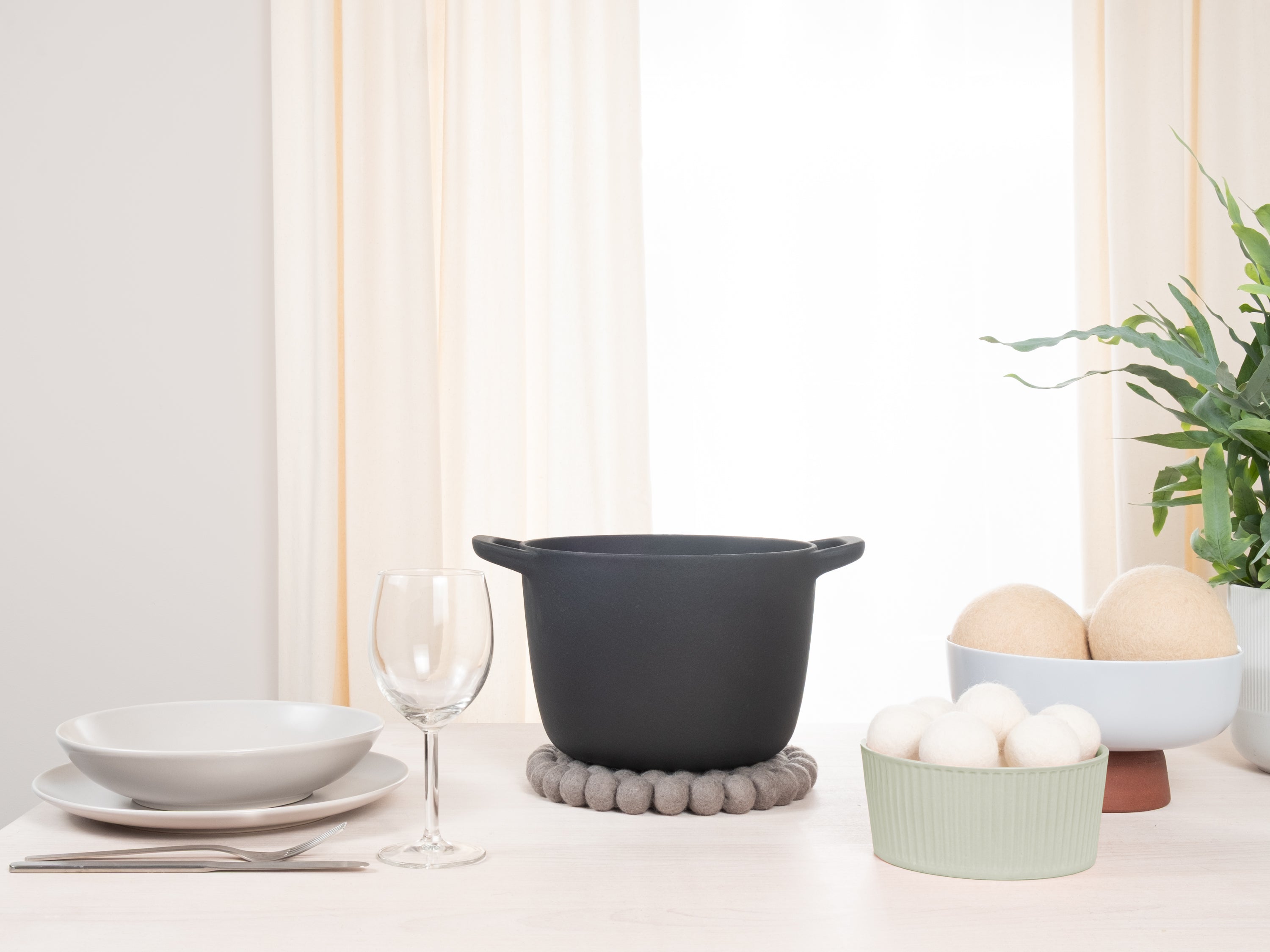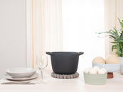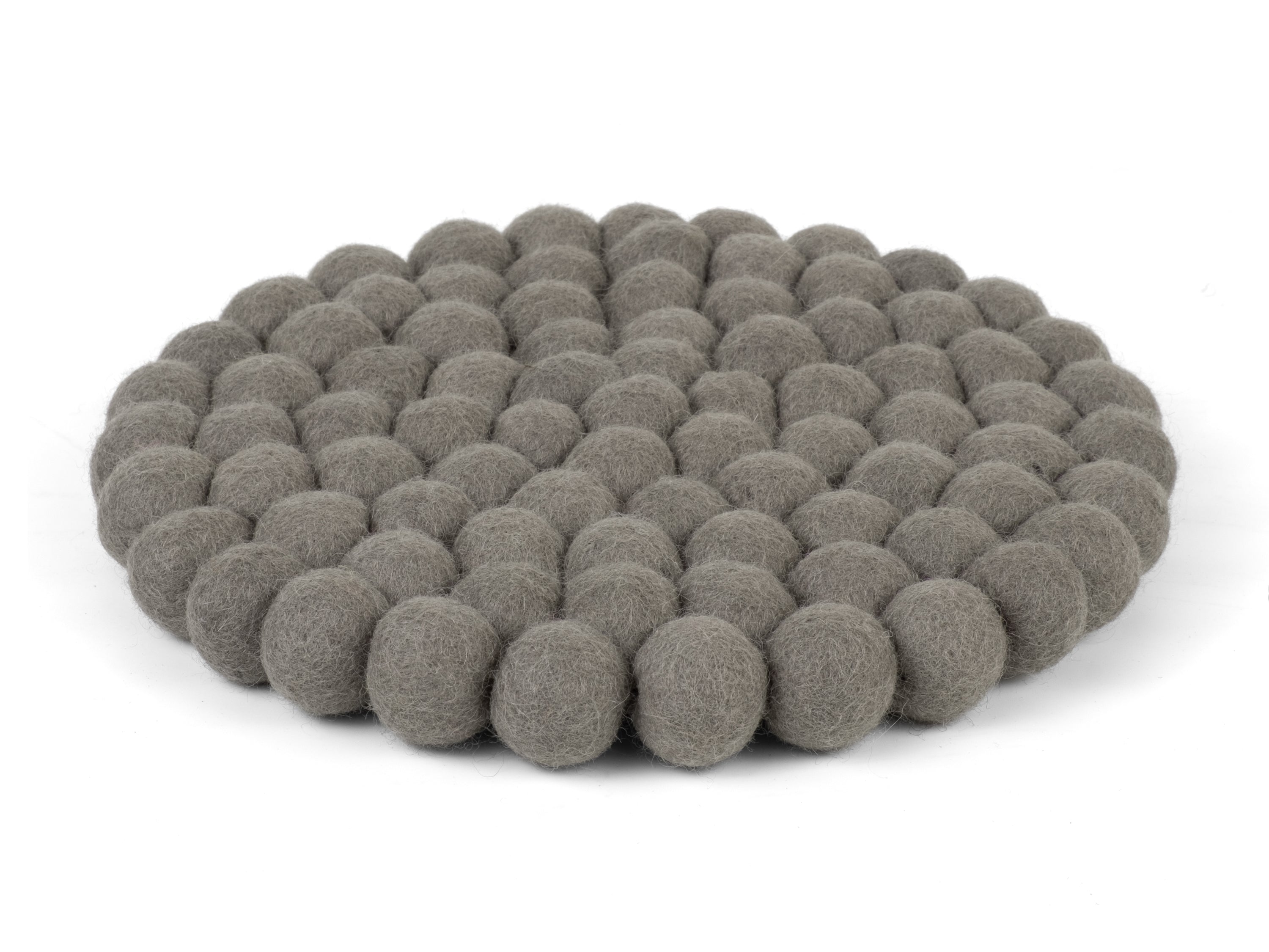 Runder, grauer Topfuntersetzer aus reiner Schurwolle