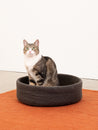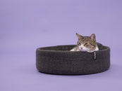 Handgefertigter anthrazitfarbener Katzenkorb aus 100% neuseeländischer Schurwolle.