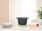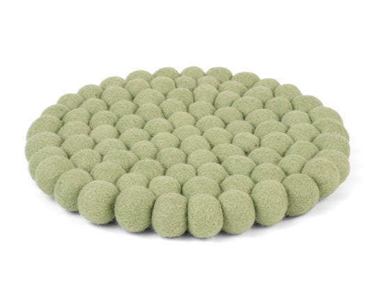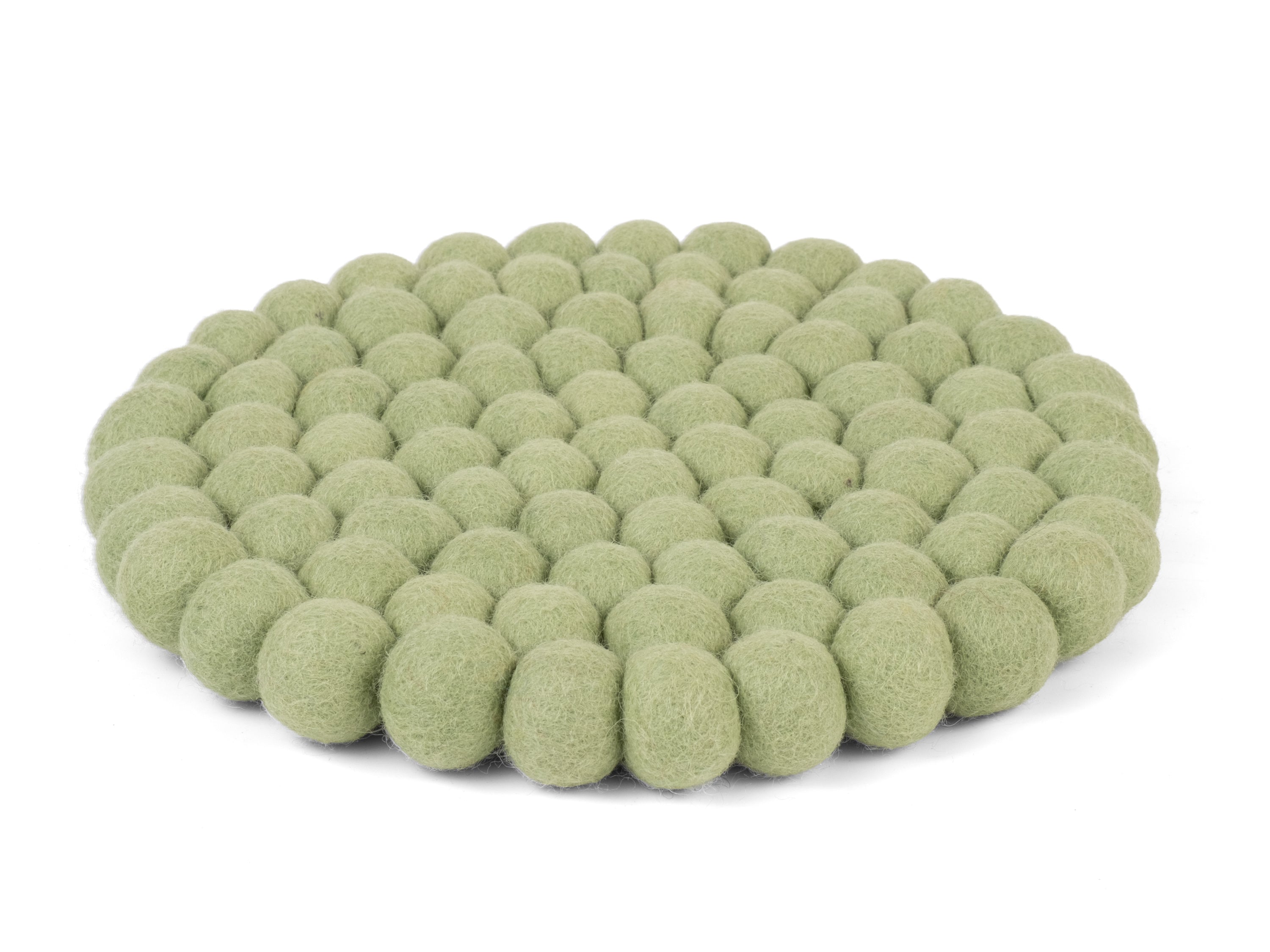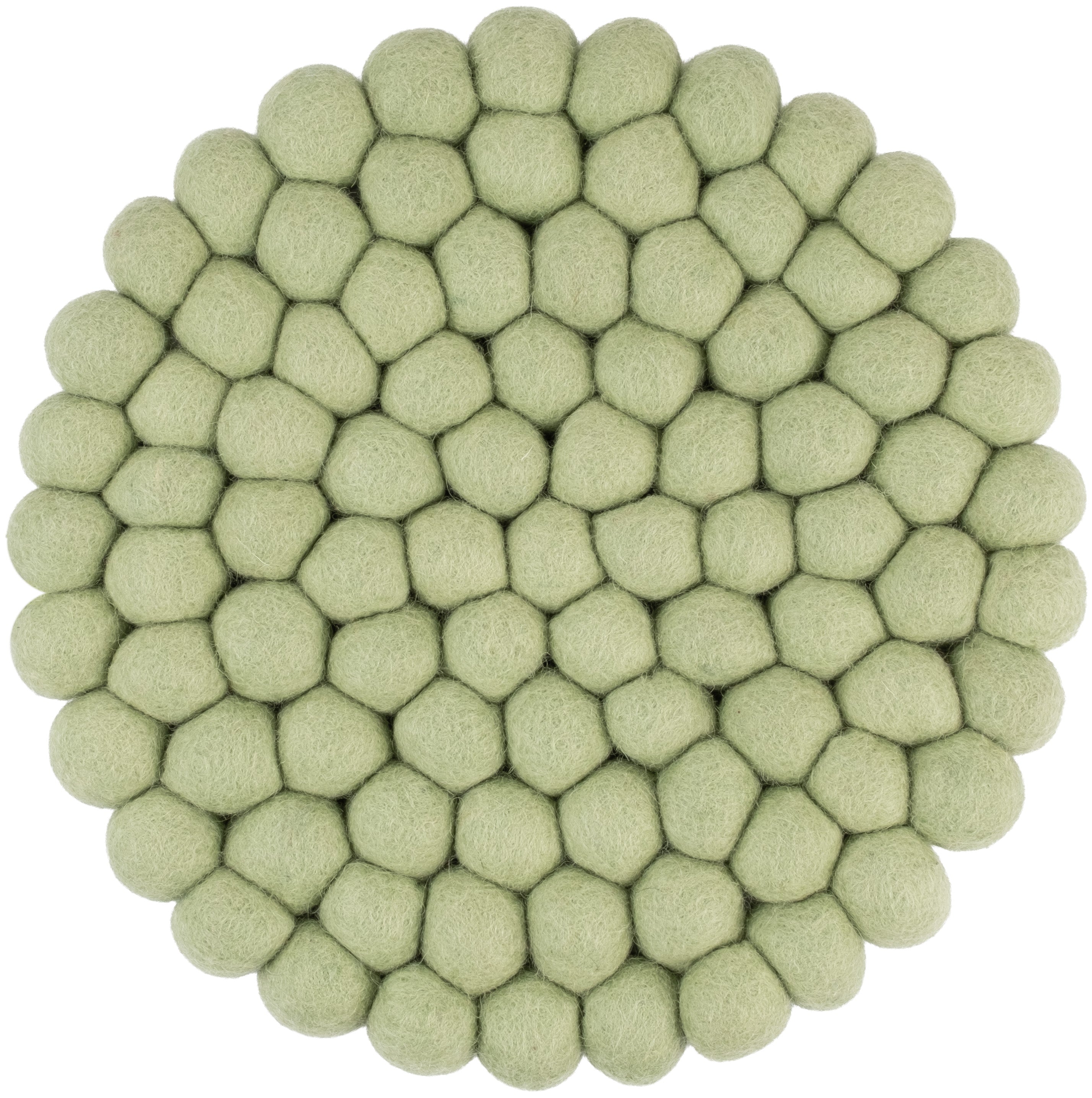 Runder, hellgrüner Topfuntersetzer aus reiner Schurwolle