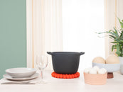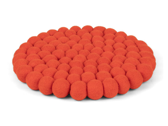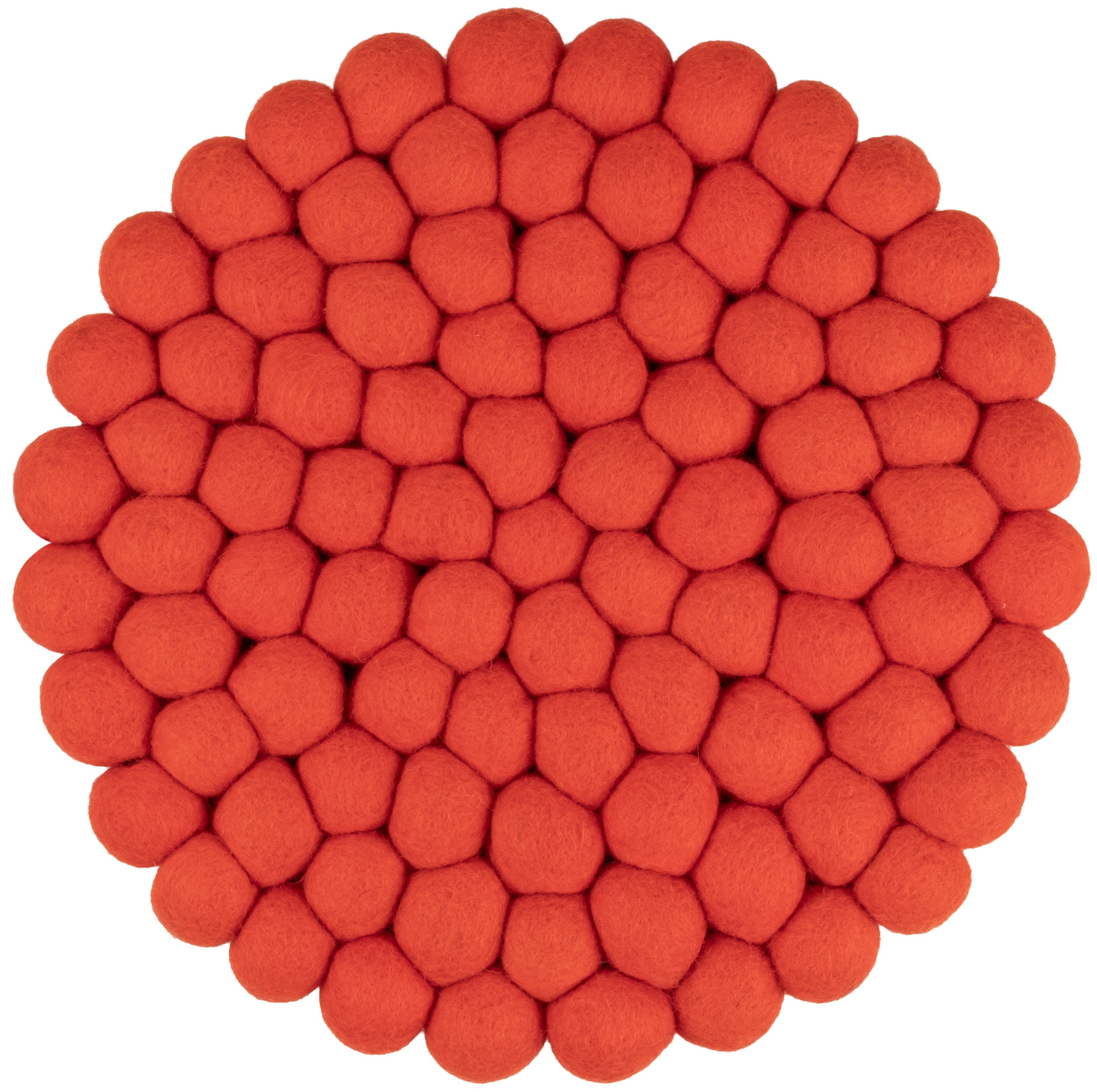Runder, rotoranger Topfuntersetzer aus reiner Schurwolle