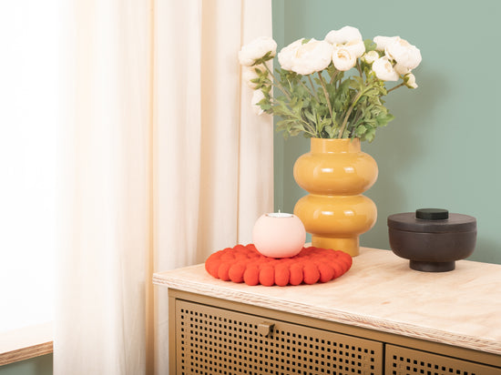 Der Topfuntersetzer Mats in der Farbe Rotorange verbindet Funktion mit charmanter Optik. Robust, hitzebeständig, wasser- und schmutzabweisend sowie beidseitig verwendbar. Gefertigt aus reiner Schurwolle, von Hand in Nepal hergestellt und unter fairen Bedingungen produziert.