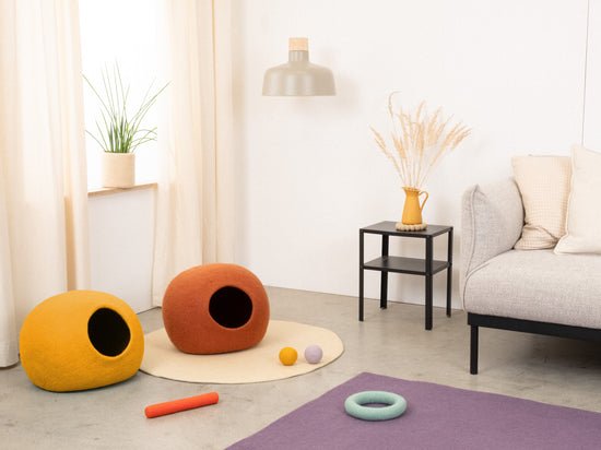 Ein Blickfang für dein Zuhause. Jede Katzenhöhle wird in Manufakturqualität gefertigt. So bietet das fest gefilzte Material Formstabilität auf höchstem Niveau. Dies gewährleistet jahrelange Freude – Für die Katze und den Betrachter.
