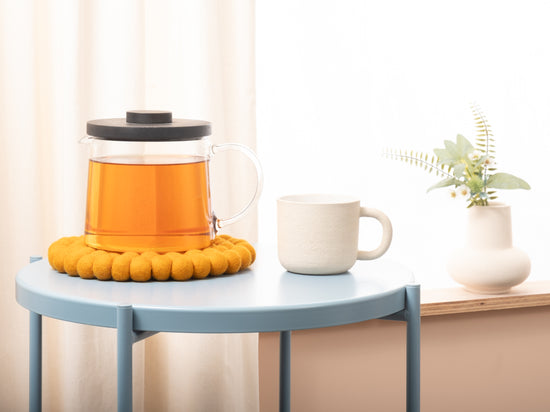 Der Topfuntersetzer Risa in der Farbe Ockergelb verbindet Funktion mit charmanter Optik. Robust, hitzebeständig, wasser- und schmutzabweisend sowie beidseitig verwendbar. Gefertigt aus reiner Schurwolle, von Hand in Nepal hergestellt und unter fairen Bedingungen produziert.