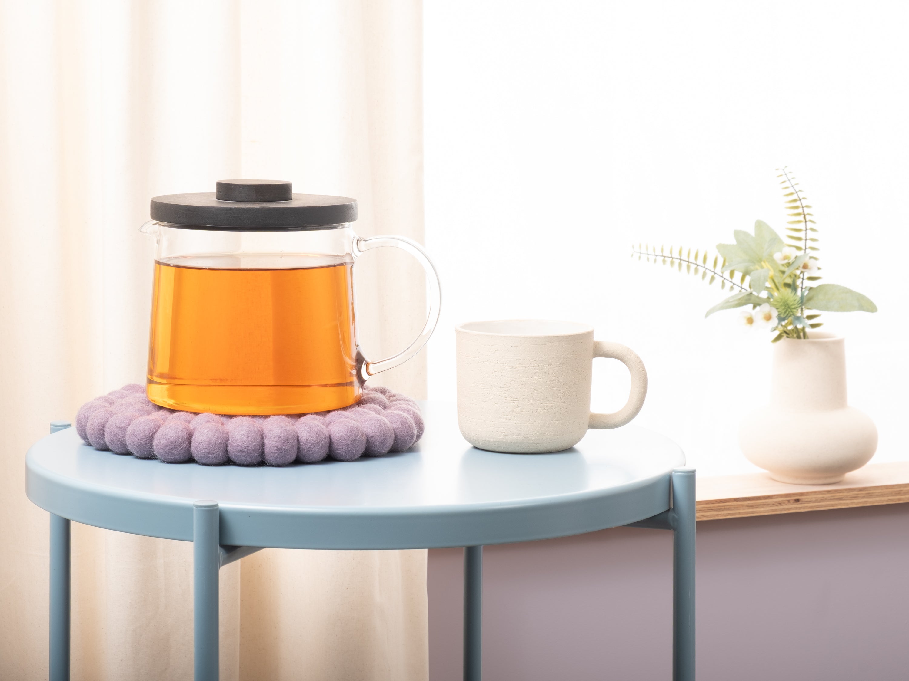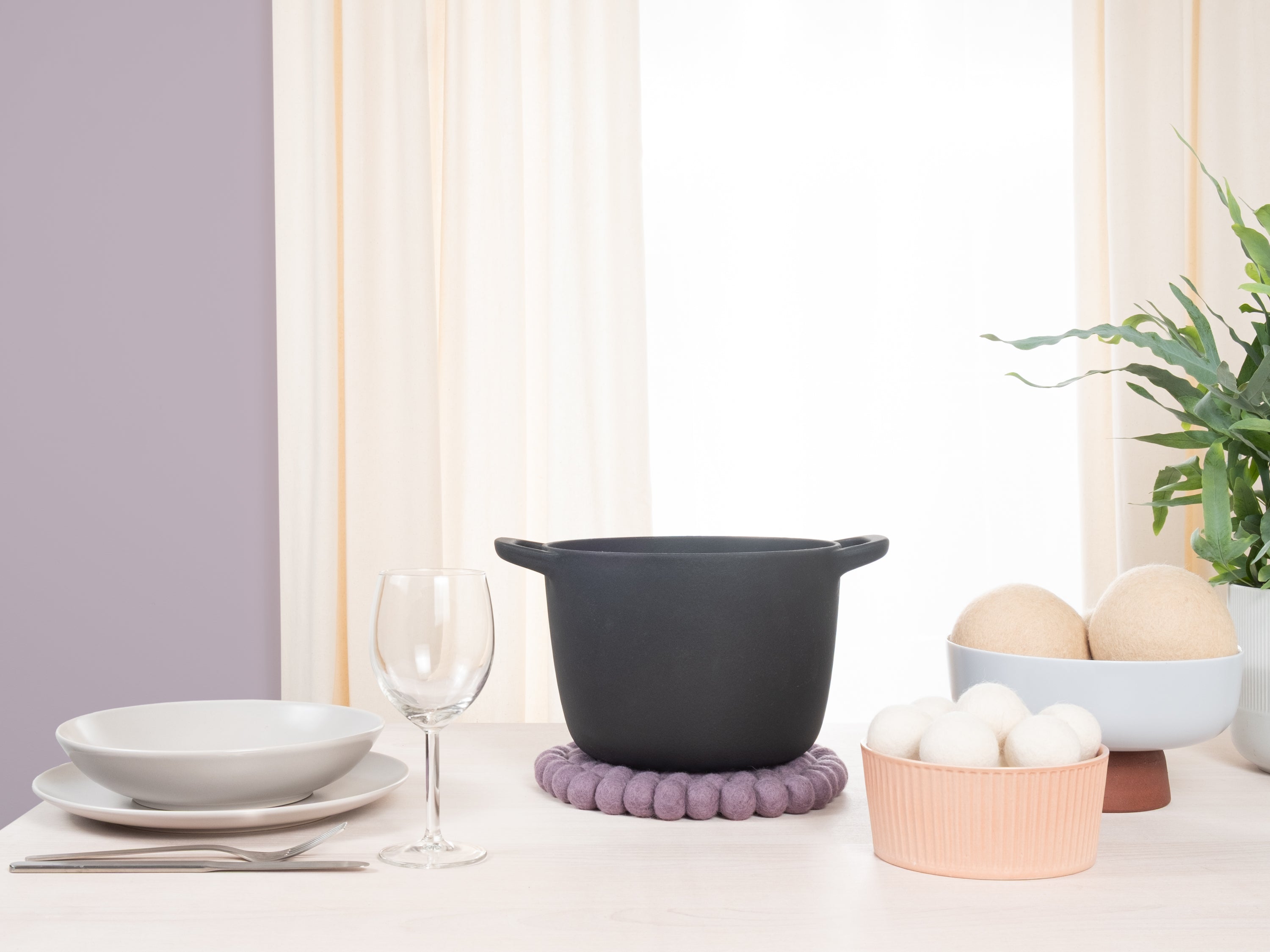 Der Topfuntersetzer Tove in der Farbe Fliedergrau verbindet Funktion mit charmanter Optik. Robust, hitzebeständig, wasser- und schmutzabweisend sowie beidseitig verwendbar. Gefertigt aus reiner Schurwolle, von Hand in Nepal hergestellt und unter fairen Bedingungen produziert.